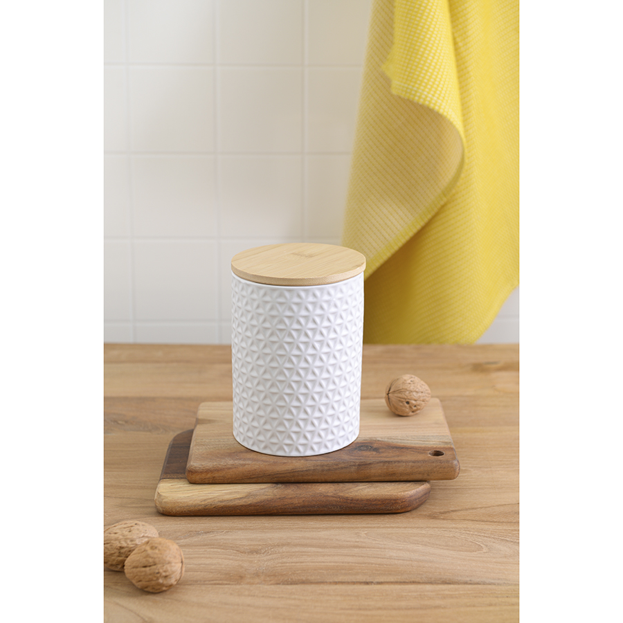 Материалы: керамика, бамбук. Размеры: 11х14,8 см. Объем: 900 мл. Цвет: белый.