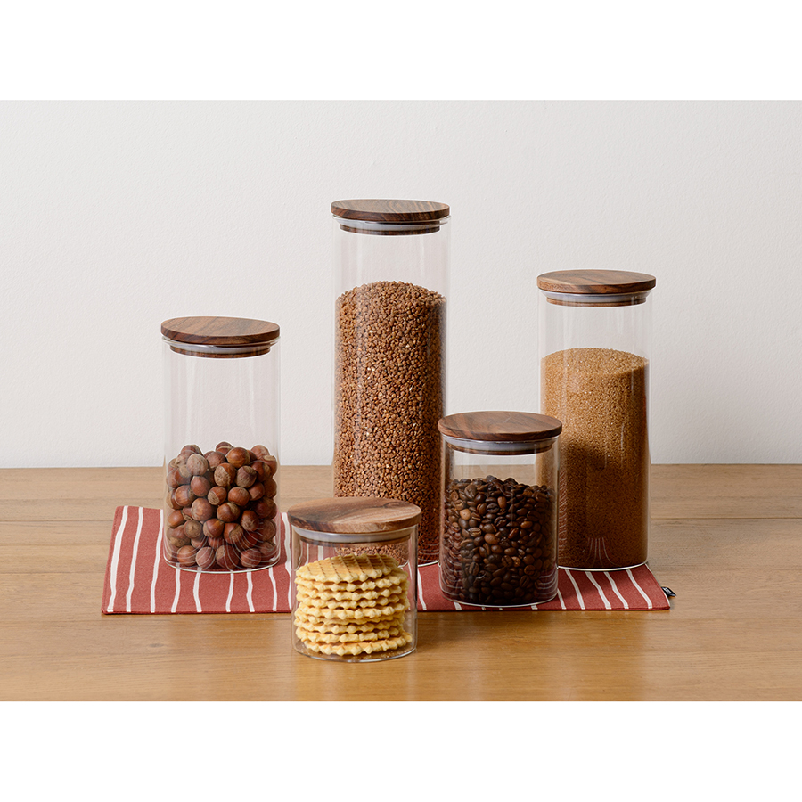 Банка для хранения в минималистичном дизайне поможет организовать порядок на кухне.