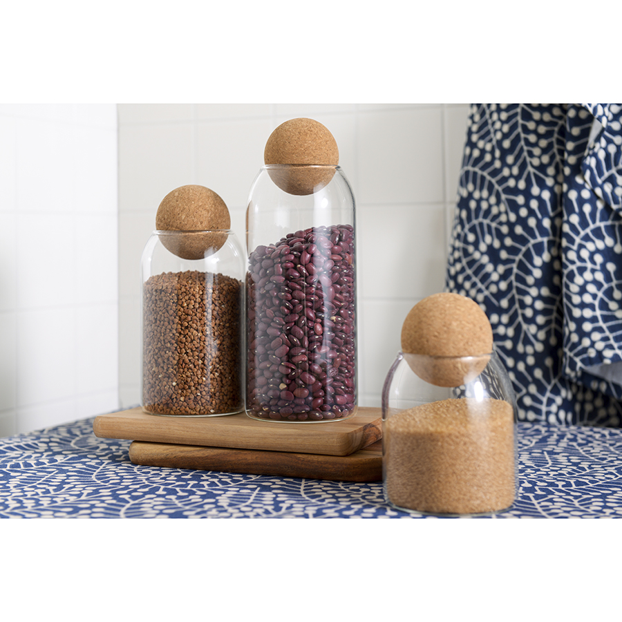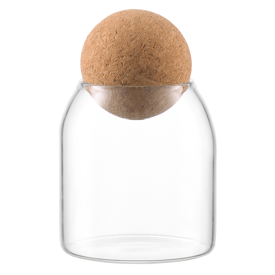 - Крышка из натуральной пробки в виде шара делает дизайн интересным, обеспечивает удобное и практичное хранение.