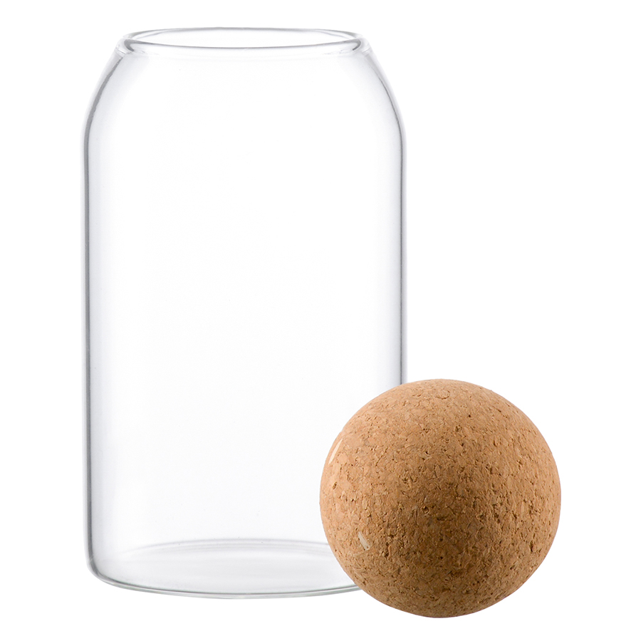 - Крышка из натуральной пробки в виде шара делает дизайн интересным, обеспечивает удобное и практичное хранение.