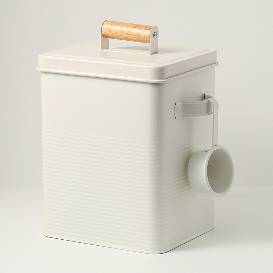 Материалы: углеродистая сталь, бамбук. Размеры банки: 23,7x16,7x27 см. Размеры ложки: 12,3х6,3х3,3 см. Объем: 6,2 л. Цвет: молочный.