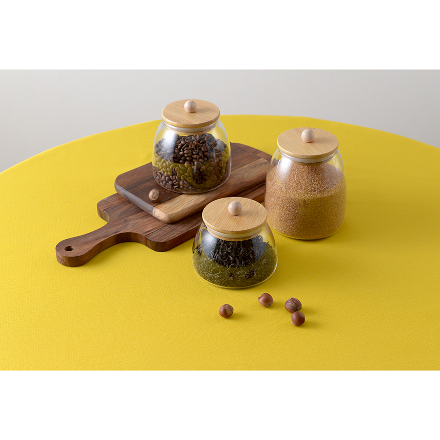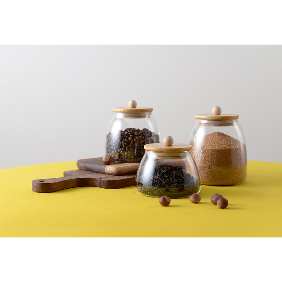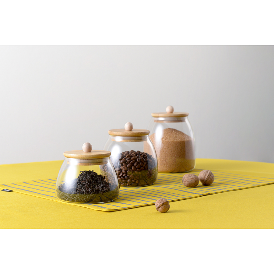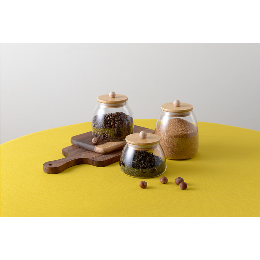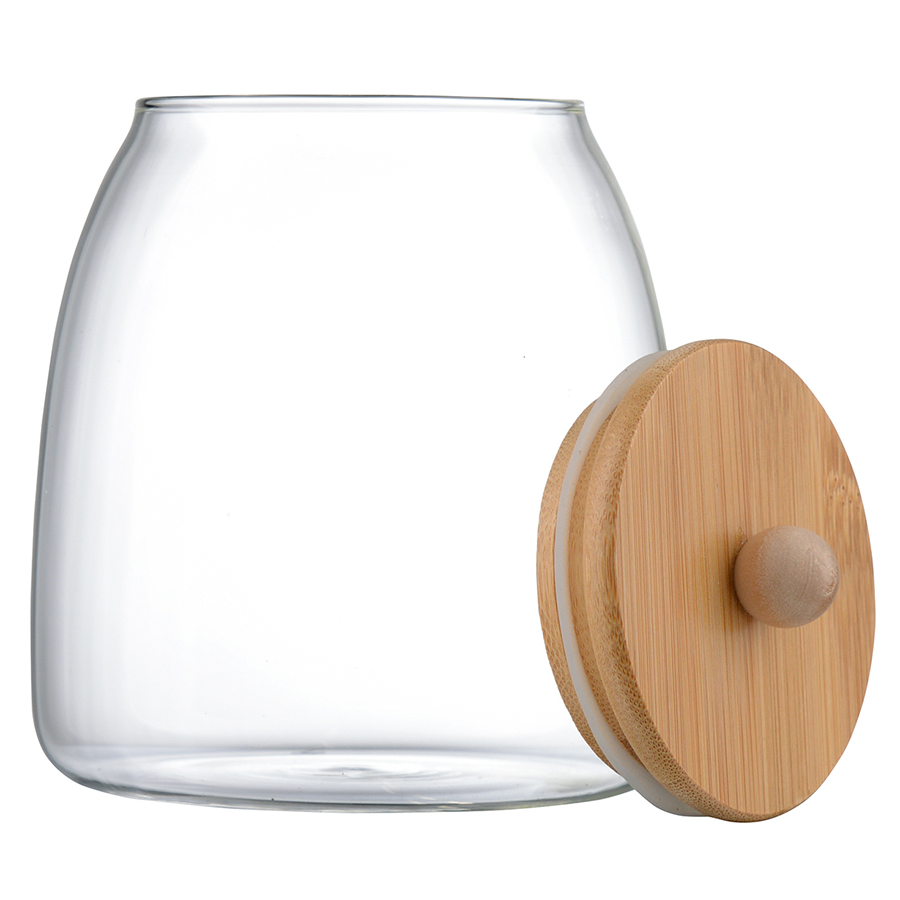 Банка плотно закрывается благодаря силиконовому ободку на бамбуковой крышке. Боросиликатное стекло отличается прочностью.