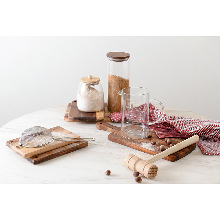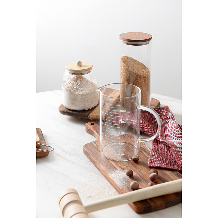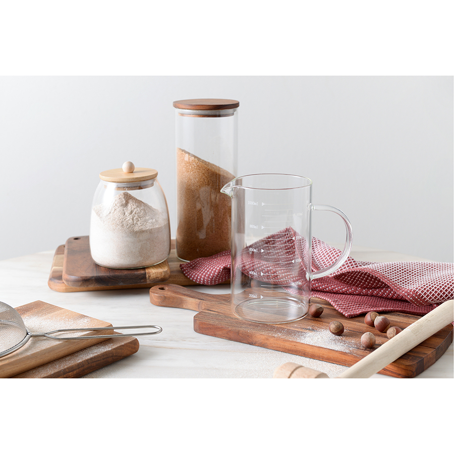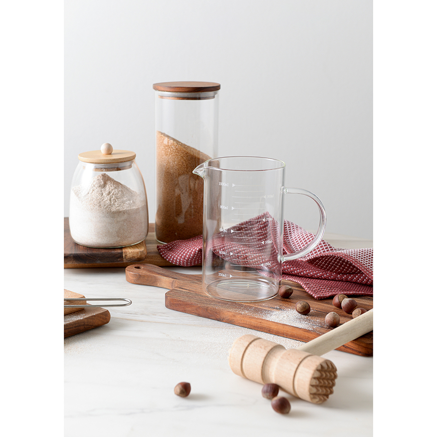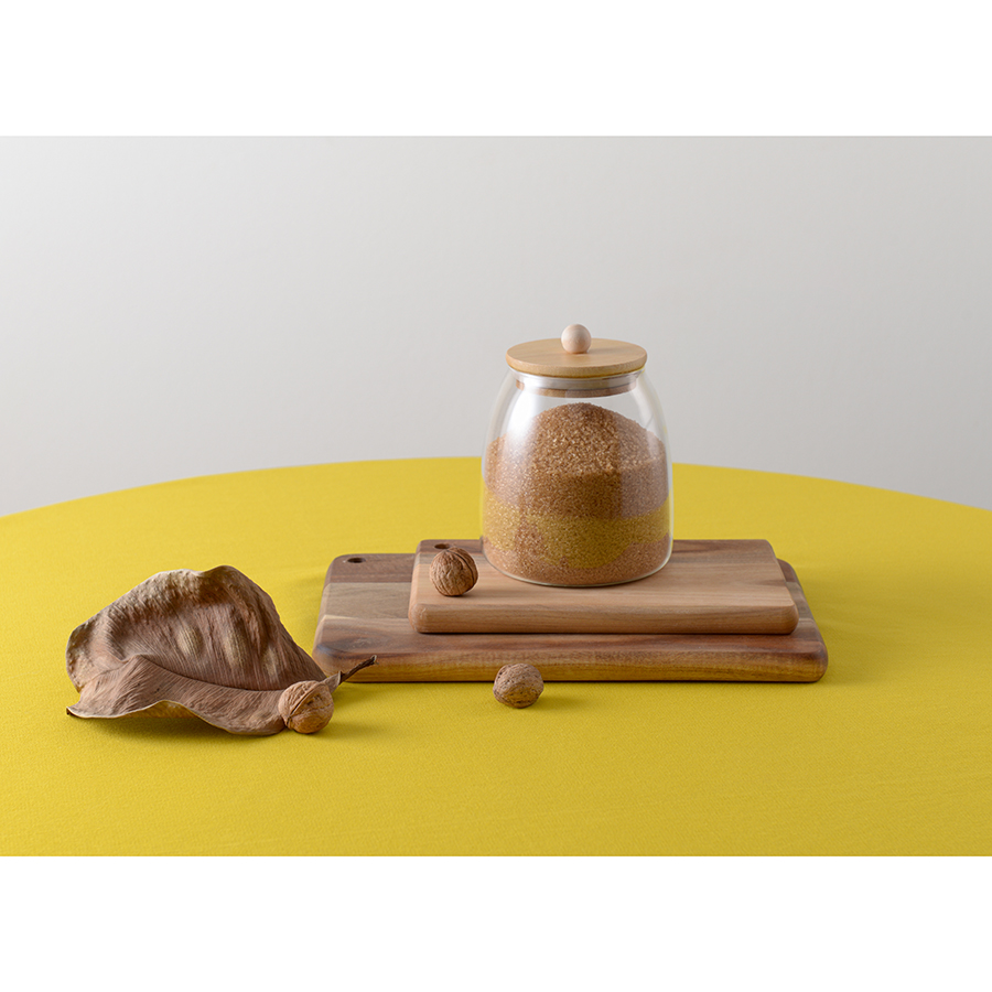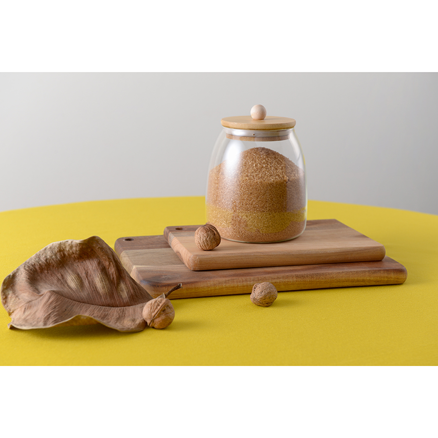 Банка плотно закрывается благодаря силиконовому ободку на бамбуковой крышке. Боросиликатное стекло отличается прочностью.