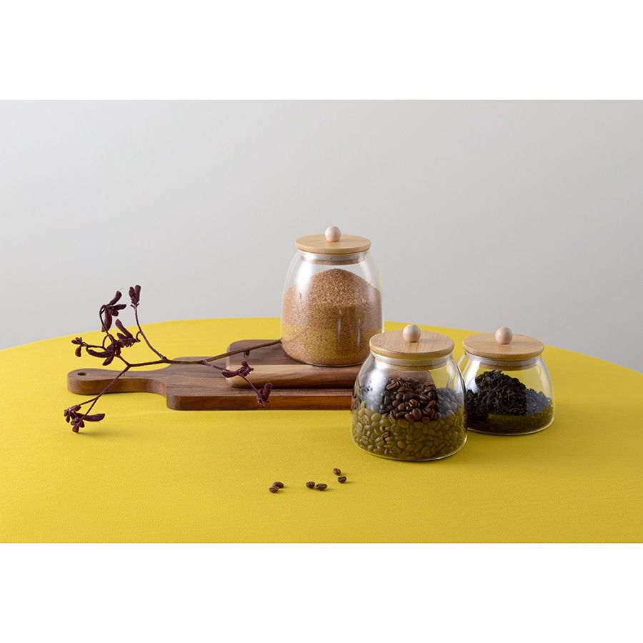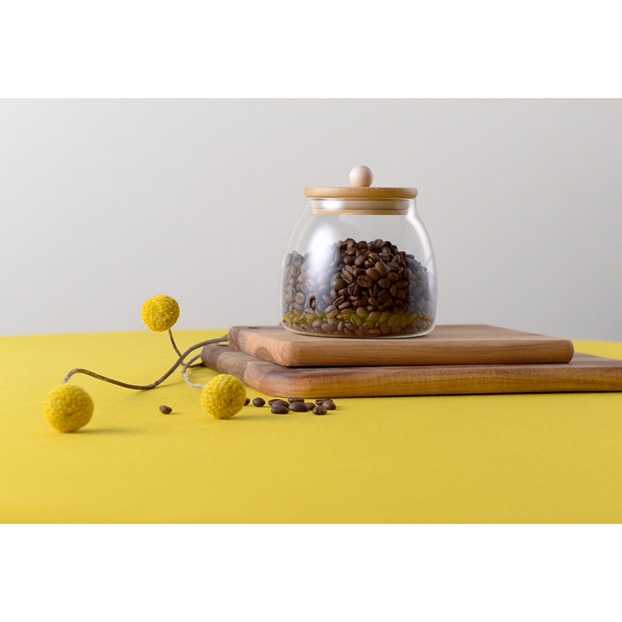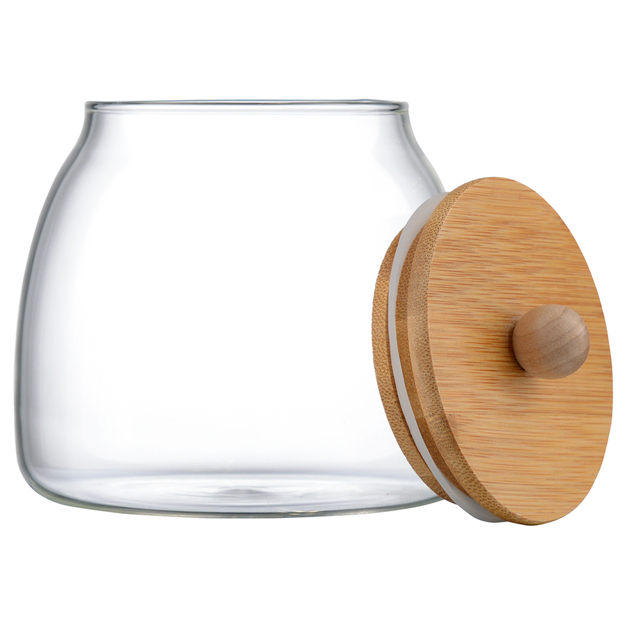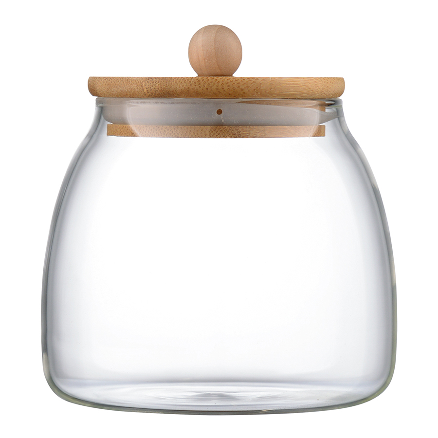Банка плотно закрывается благодаря силиконовому ободку на бамбуковой крышке. Боросиликатное стекло отличается прочностью.