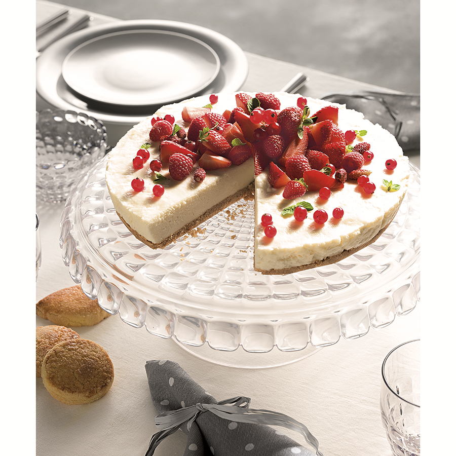 Блюдо диаметром 30 см идеально подойдет для подачи выпечки, сладостей, небольших закусок и, конечно, тортов. Крышка защитит продукты от заветривания, насекомых и других внешних факторов, что особенно важно для дачной или уличной сервировки.