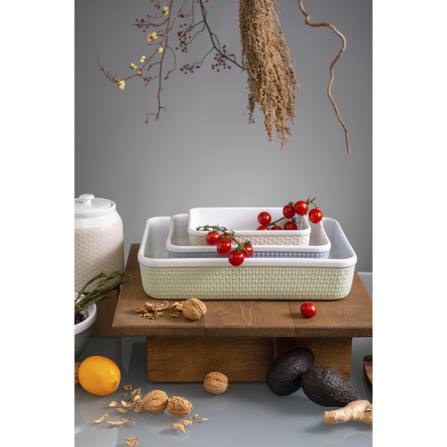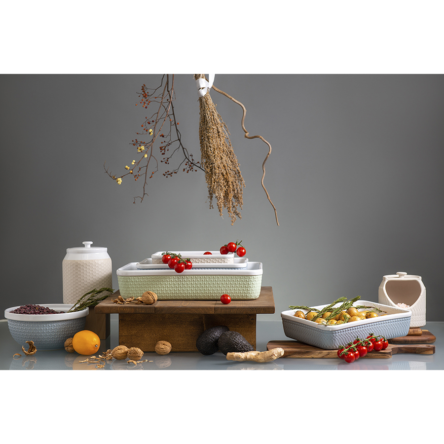 Емкость для запекания Marshmallow – прекрасный вариант для приготовления в духовке десертов, мяса, рыбы, овощей. Посуда выполнена из устойчивой к износу каменной керамики, которая легко очищается от загрязнений и сохраняет привлекательный вид долгие годы. Рельефный узор смягчает строгие формы, придает блюду особую привлекательность.