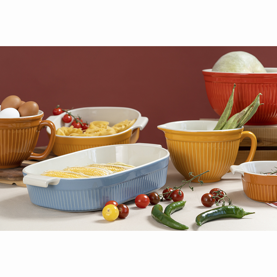 Емкость для запекания серии Soft Ripples из жаропрочной каменной керамики идеально подходит для приготовления выпечки, а также тушения и томления продуктов. За счет быстрого и равномерного прогревания формы блюда хорошо пропекаются, получаются сочными и сверху покрываются аппетитной корочкой. Наличие ручек обеспечивает аккуратное извлечение готовой пищи из духовки и удобное ее перемещение. Благодаря природным антипригарным свойствам материала не требуется добавление большого количества масла. Керамическая посуда является экологичной, не деформируется, не впитывает запахи и загрязнения. Рельефный узор на внешней поверхности стенок и интересное цветовое сочетание делают дизайн оригинальным.