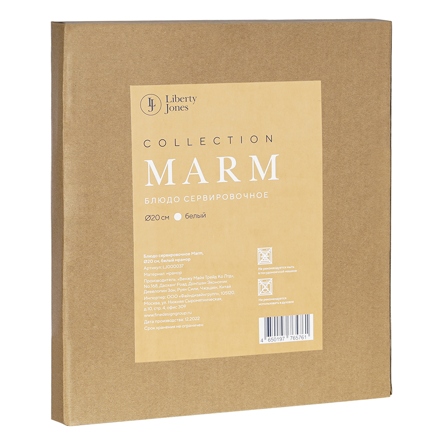 Блюдо сервировочное Marm, 20 см, белый мрамор, Liberty Jones