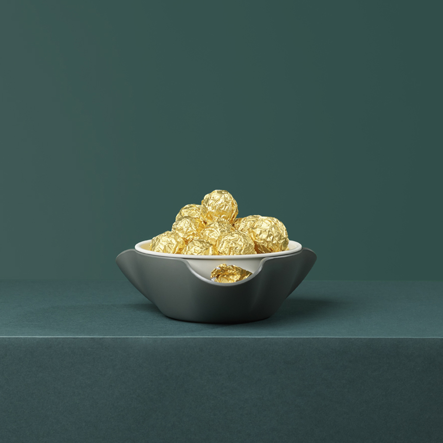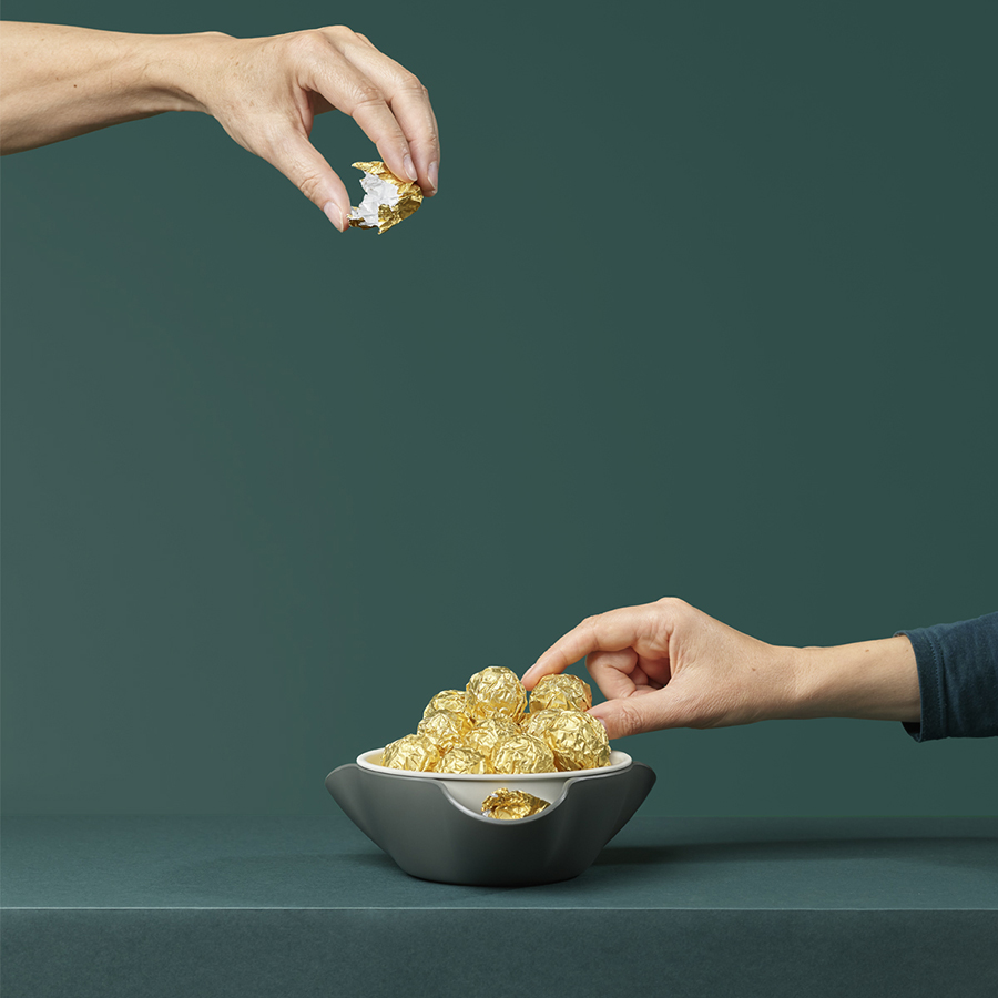 Миска состоит из двух чаш, сложенных друг в друга, причем нижняя из них изогнута наружу в трех местах, создавая желоба, в которые можно складывать пищевые отходы. Материал не содержит Бисфенол-А.
