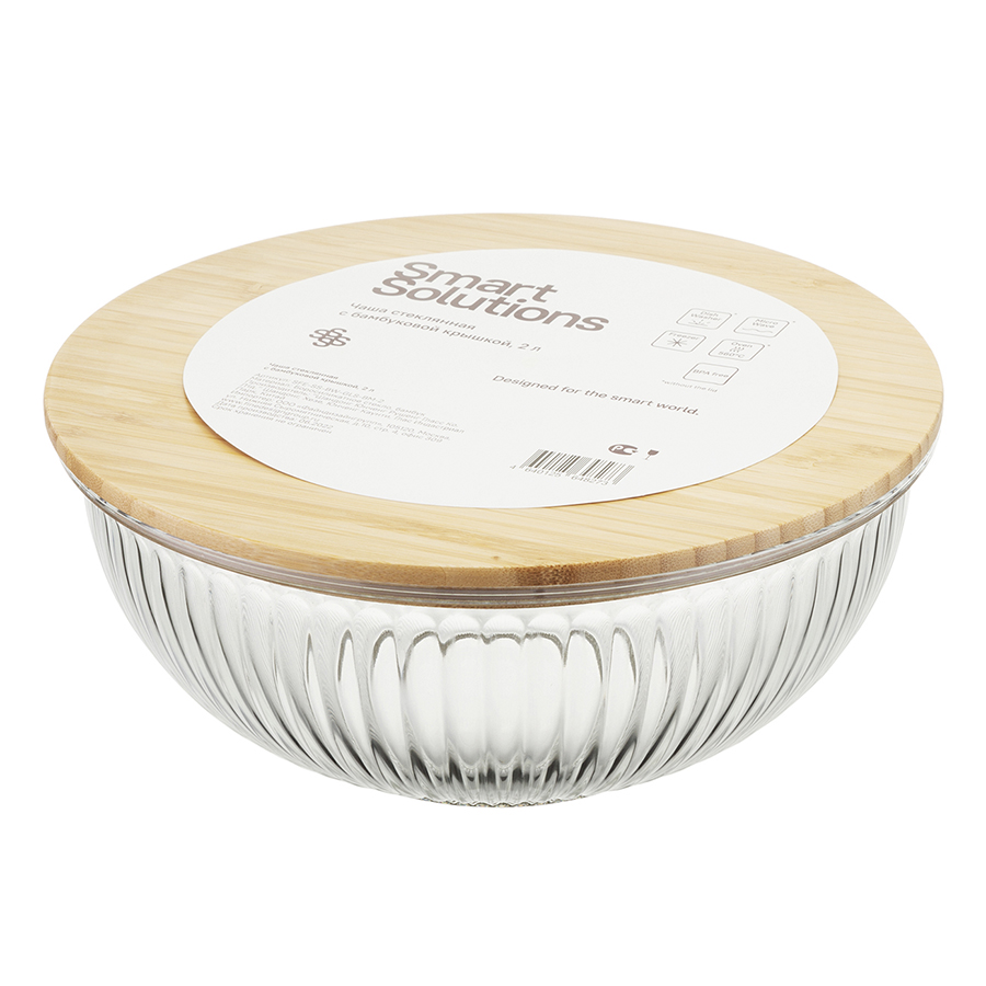 Чаша стеклянная с бамбуковой крышкой, 2 л, Smart Solutions