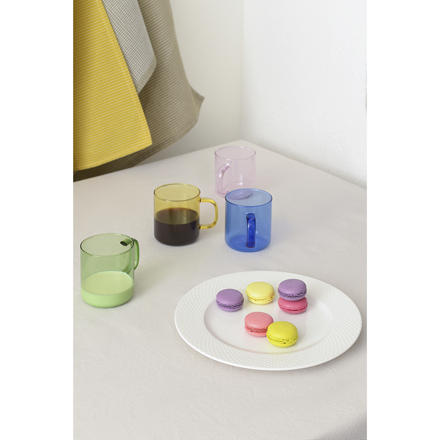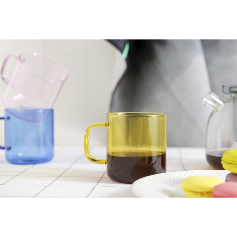Чашка предназначена для холодных и горячих напитков. Цветная емкость из полупрозрачного стекла смотрится стильно и оригинально. Материал изготовления устойчив к износу, легко очищается от загрязнений. Посуду можно использовать как в помещении, так и на улице во время пикника или отдыха у бассейна.