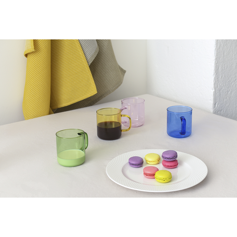 Чашка предназначена для холодных и горячих напитков. Цветная емкость из полупрозрачного стекла смотрится стильно и оригинально. Материал изготовления устойчив к износу, легко очищается от загрязнений. Посуду можно использовать как в помещении, так и на улице во время пикника или отдыха у бассейна.