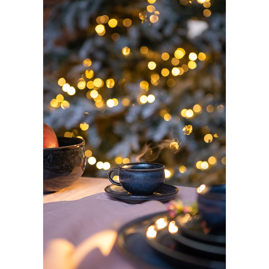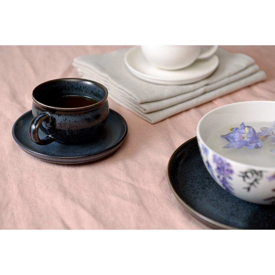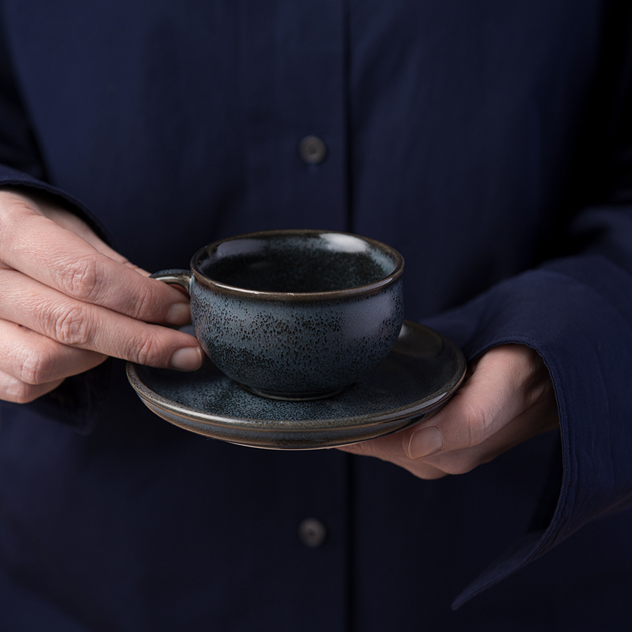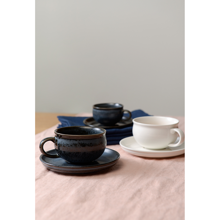 Чайная пара из серии Cosmic Kitchen от бренда Liberty Jones выполнена из высококачественного фарфора. Внешние и внутренние поверхности емкостей покрыты реактивной глазурью, которая создает интересный эффект состаривания. Дизайн особенно понравится поклонникам таких уютных стилевых направлений, как кантри, сканди, эко, эклектика. Фарфоровые чашка и блюдце легко моются, не впитывают запахи и загрязнения, долго сохраняют привлекательный вид. Экологичный материал безопасен для здоровья.