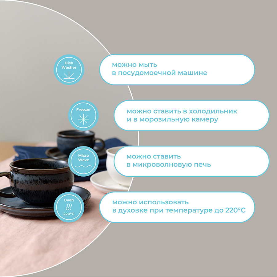 Посуду рекомендуется очищать от загрязнений в теплой воде с помощью мягкой губки с жидким средством. Допускается мытье в посудомоечной машине, использование в морозильной камере, микроволновой печи и духовке при температуре не выше 180 °C.