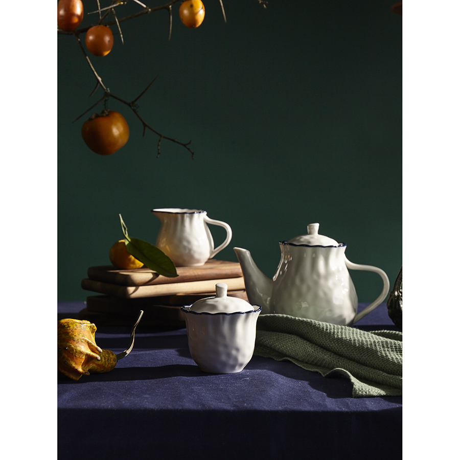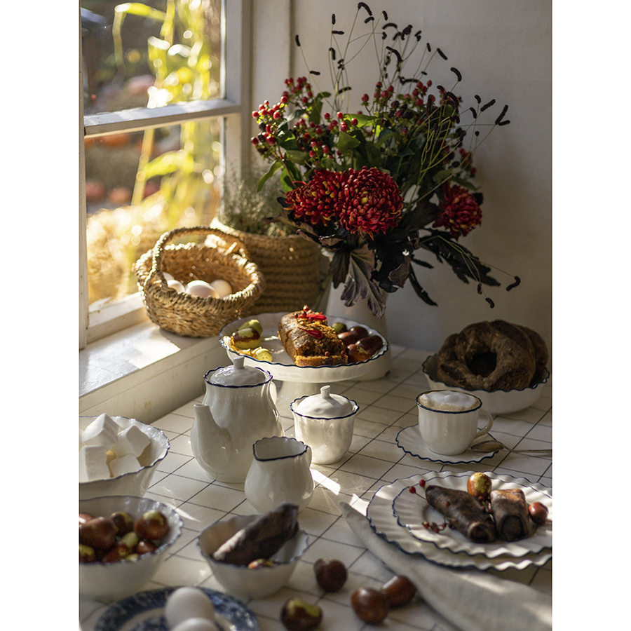 Коллекция Santorini великолепно передает атмосферу уединенного греческого острова, известного своими завораживающими видами и удивительной архитектурой. Оттенки белого и синего напоминают о бескрайнем море и уютных домиках на скалах, а необычная “мятая” фактура фарфора ассоциируется с каменистыми склонами и живописными утесами.