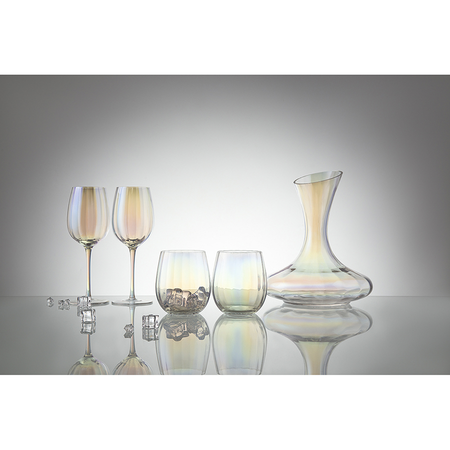 Линейка Gemma Opal привлекает лаконичным дизайном и необычным цветовым решением в виде радужных переливов. Вся посуда выполнена вручную из выдувного стекла. Такой способ производства позволяет играть с линиями и изгибами, создавая уникальные и неповторимые продукты. Изделия получаются более прочными, но при этом тоньше и прозрачнее аналогов из обычного стекла.
