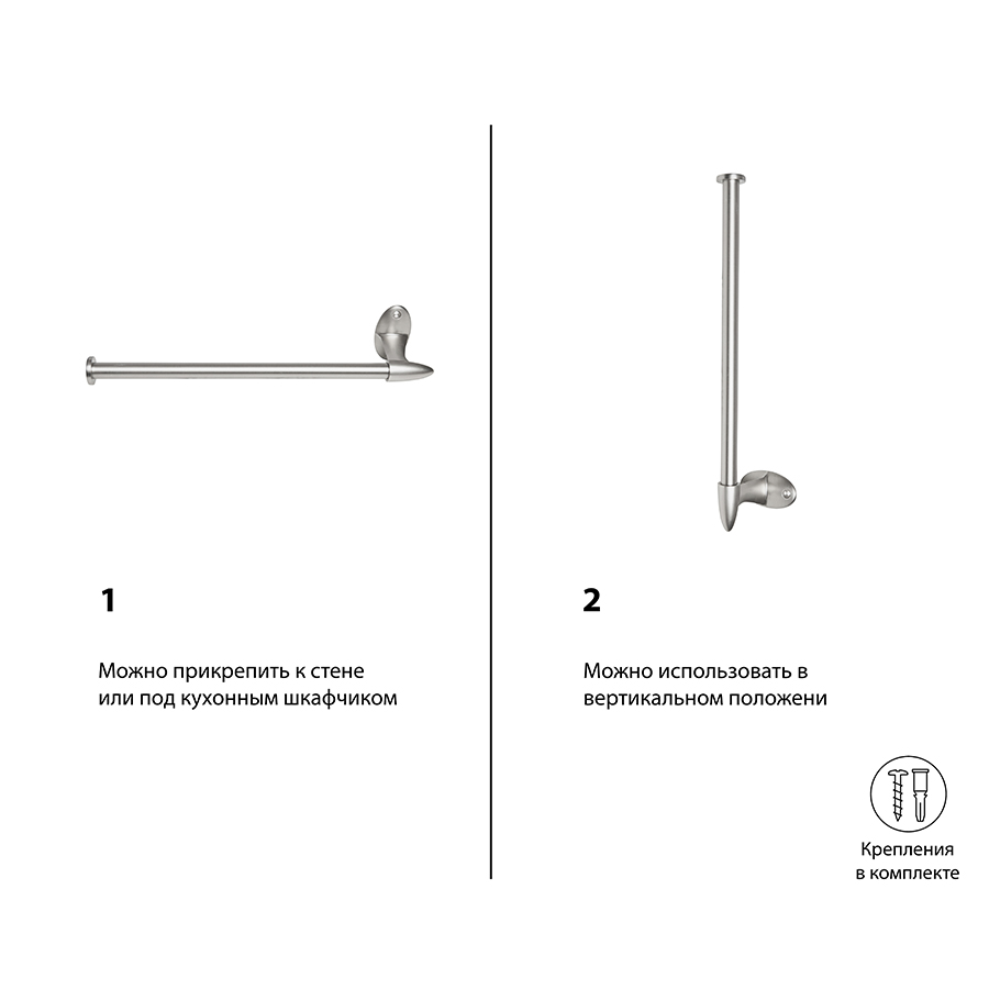 Держатель можно прикрепить к стене или шкафу. Поставляется со всем монтажным оборудованием.