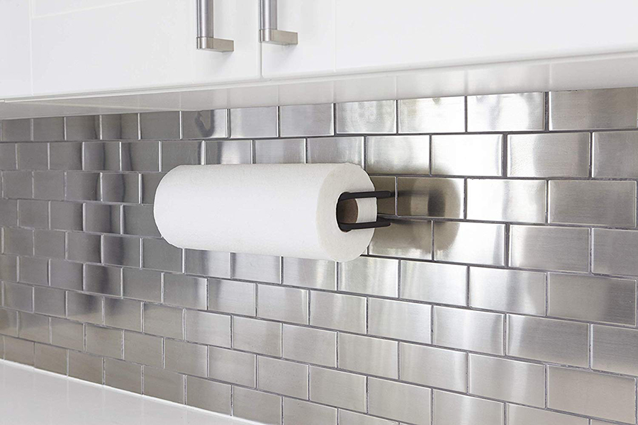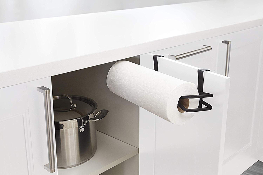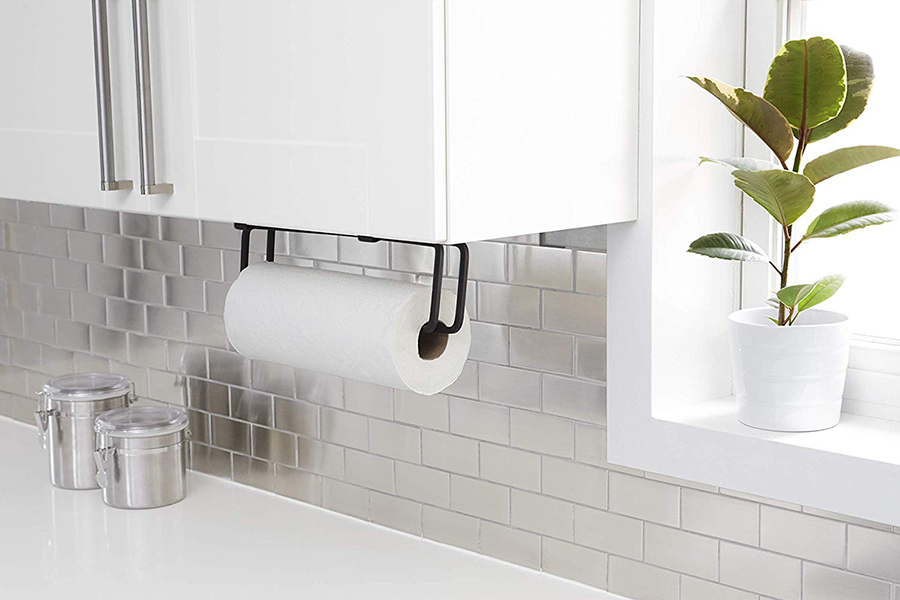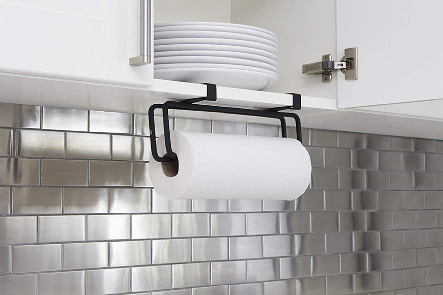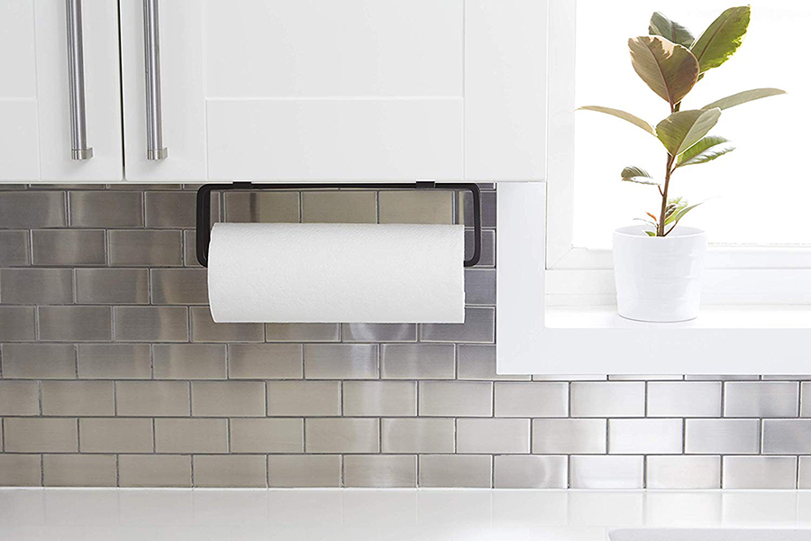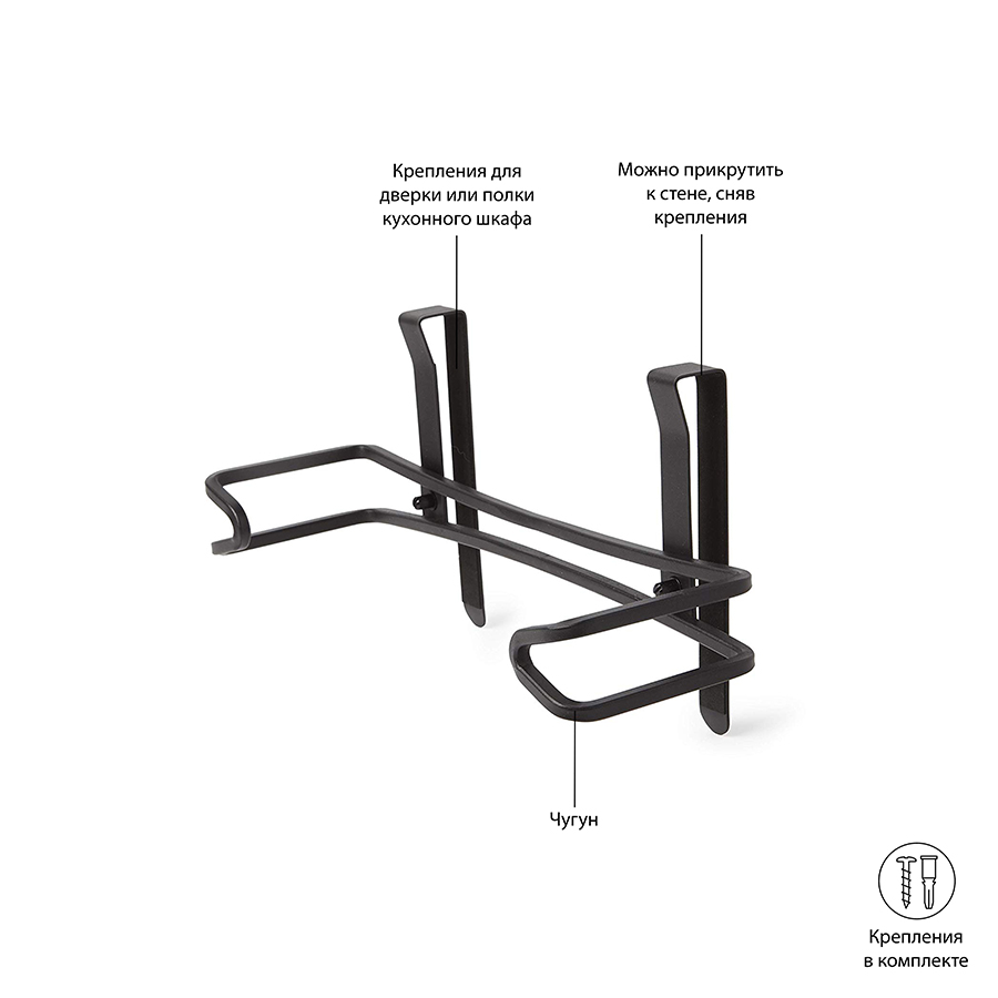 Аксессуар легко крепится к стене, дверце или полке шкафа. Удобное крепление-зажим позволит вам удобно зафиксировать держатель не только на стене, но и на дверце кухонного шкафчика. Изделие выполнено из квадратной металлической проволоки, покрытой черной краской и выгнутой в графическую линию. Поставляется со всем монтажным оборудованием.
