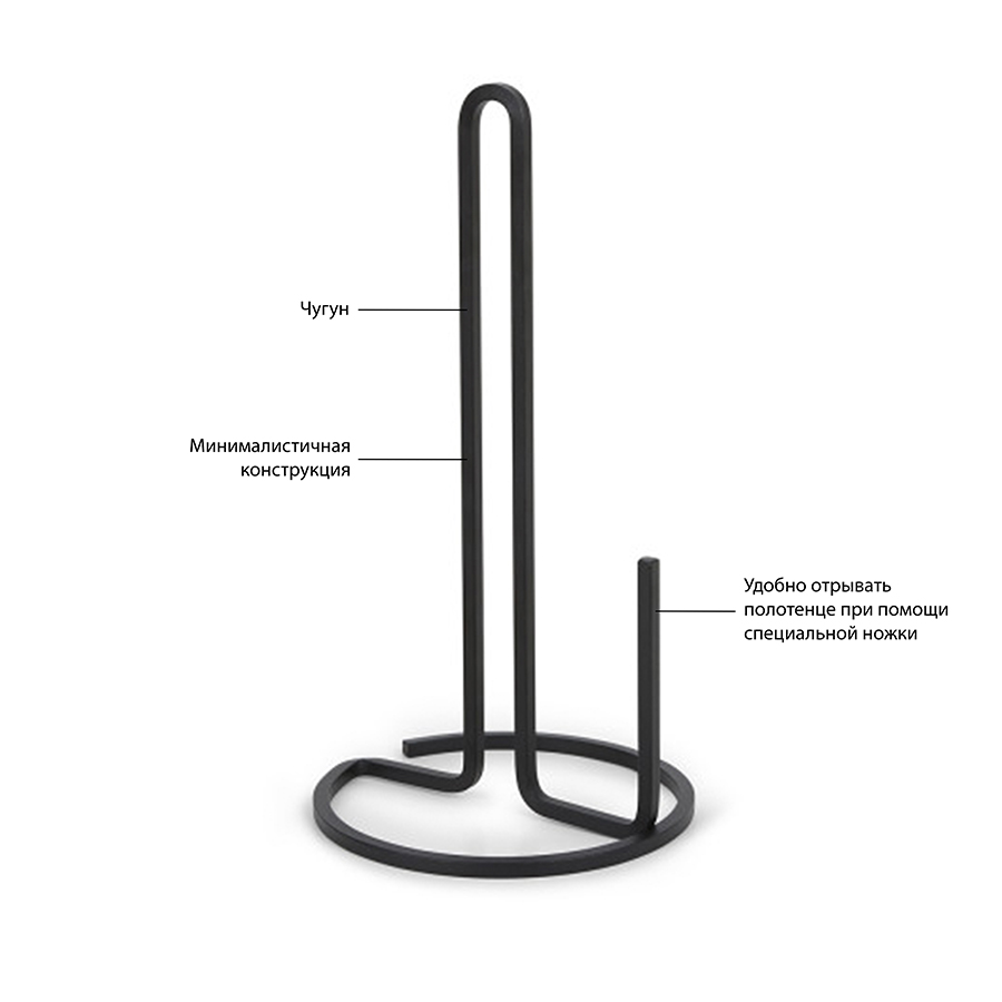 Изделие выполнено из квадратной металлической проволоки, выгнутой в графическую линию. Основание держателя дополнено встроенным отрывным стержнем, который предназначен для удобного дозирования бумажного полотенца.