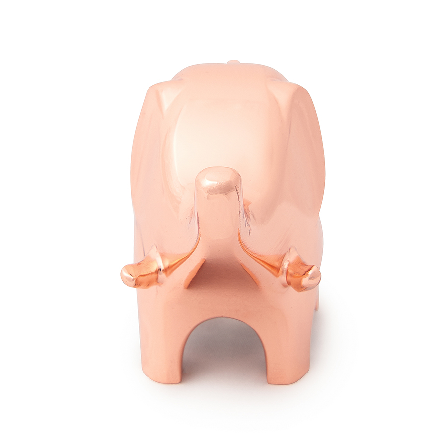 Хобот является импровизированной вешалкой для колец и перстней, которая вмещает более 8 украшений. Аксессуар изготовлен из цинкового металла с блестящим хромированным покрытием. Основание подставки имеет войлочную подкладку для защиты поверхности от царапин.