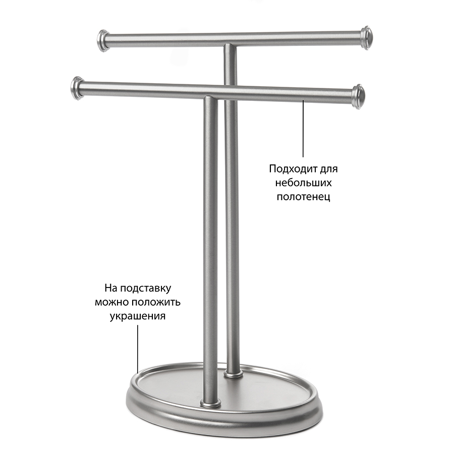 Изделие выполнено из прочного металла с гладкой никелевой отделкой.