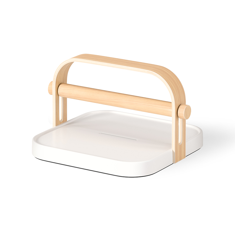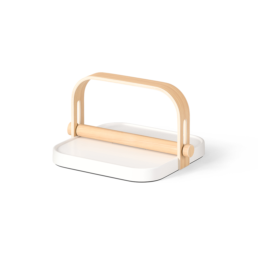 Подвижная рама позволяет регулировать глубину, и даже сделать держатель почти плоским, благодаря чему его удобно хранить и брать с собой на пикники. Верхняя часть сделана из приятного на ощупь пластика. Автор дизайна - Jordan Murphy.