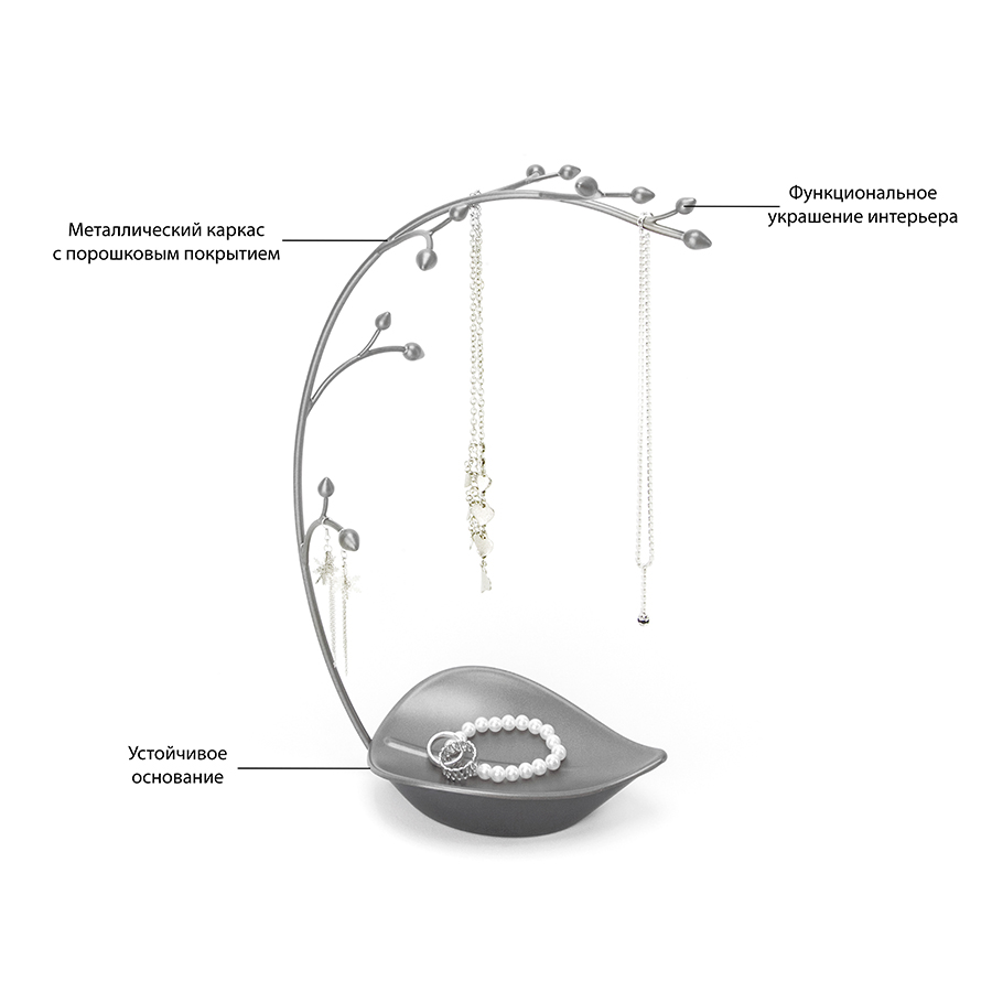 На 12 импровизированных выступов-держателей в виде почек растения можно повесить кольца, браслеты, цепочки. Брошки, увесистые ожерелья, кулоны можно сложить в поддон у основания орхидеи.
