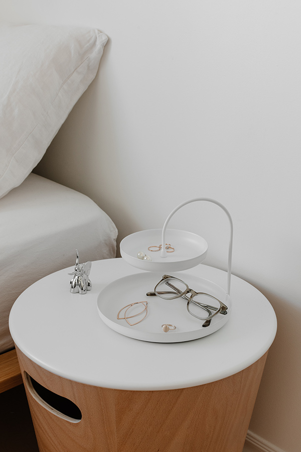 На нижней большой полочке можно хранить крупные предметы: часы, браслеты, ключи, а на маленькой верхней — кольца, серьги, и цепочки.