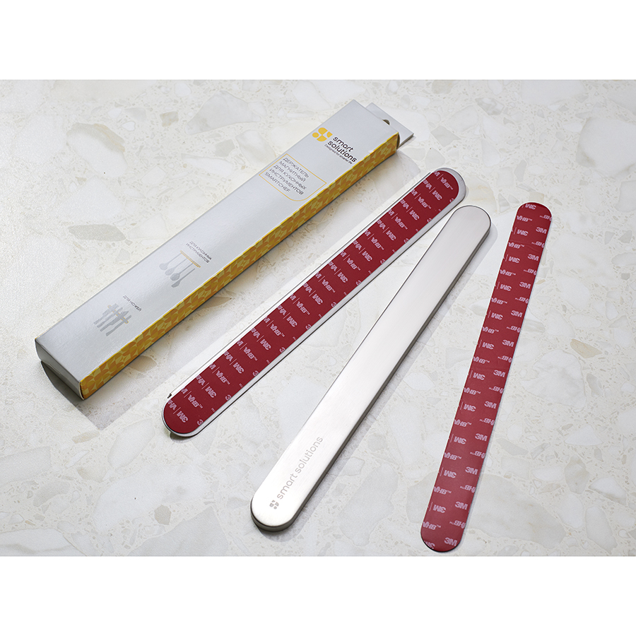 - Мощный магнит надежно удерживает кухонные принадлежности, предотвращая их падение и случайное повреждение.