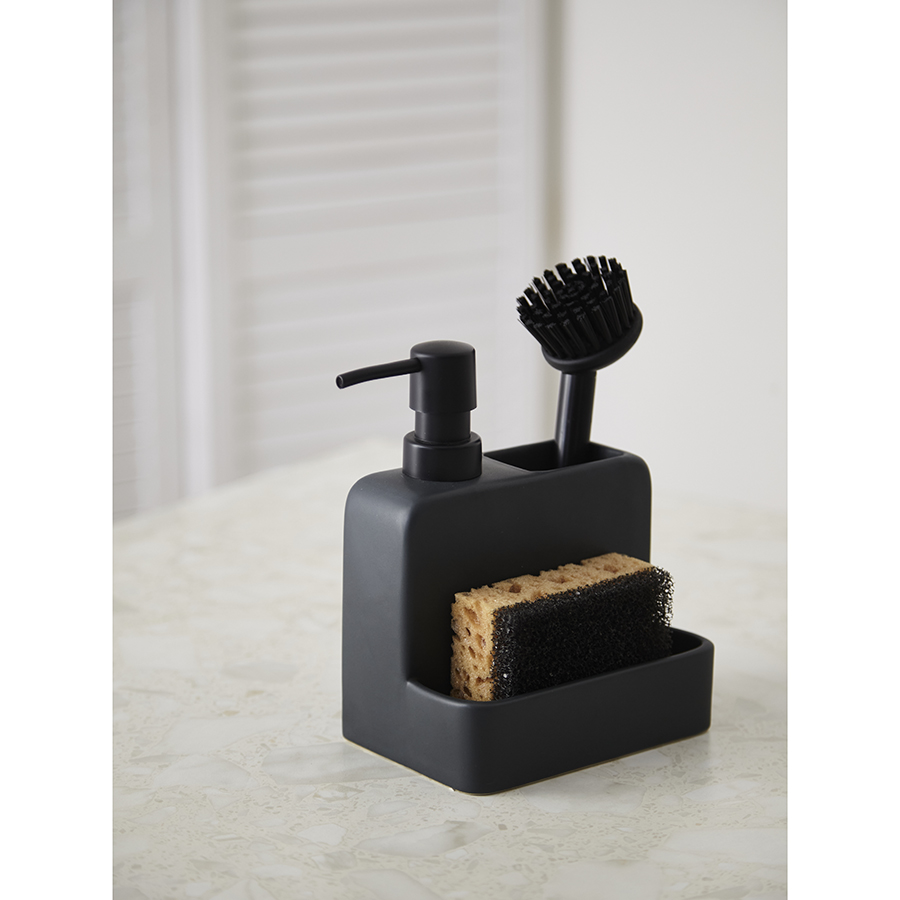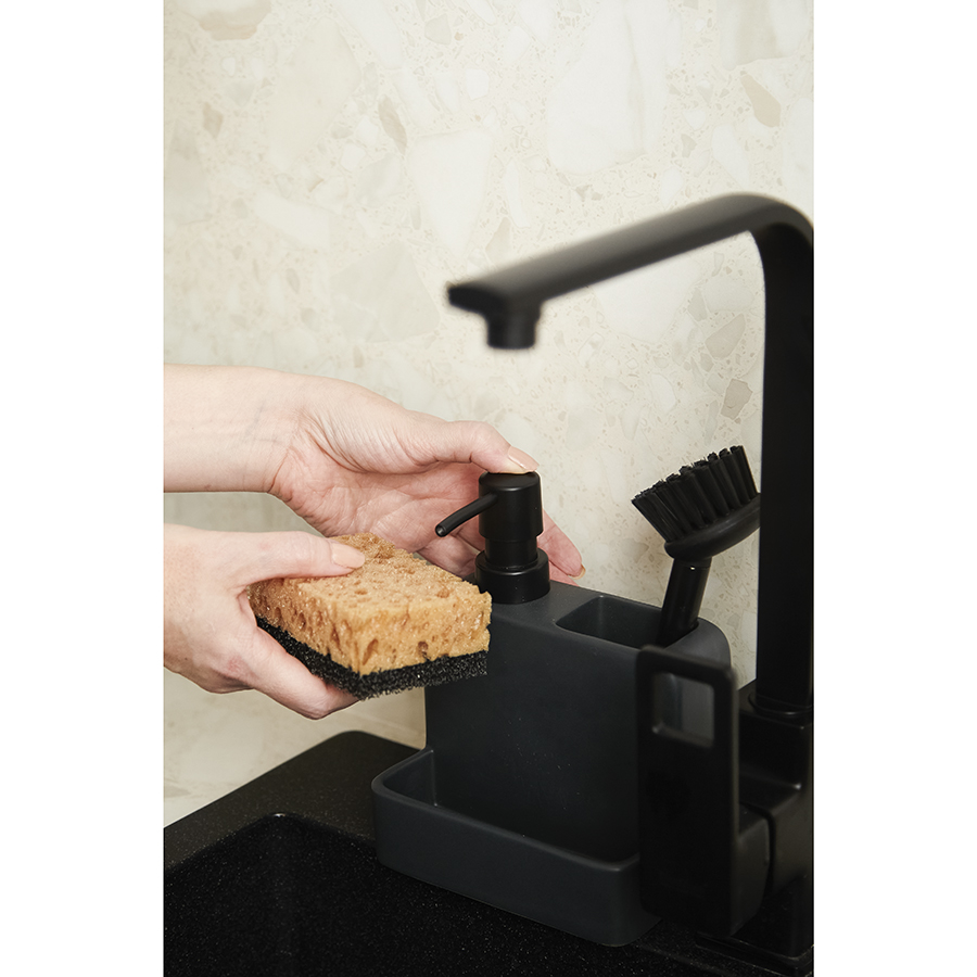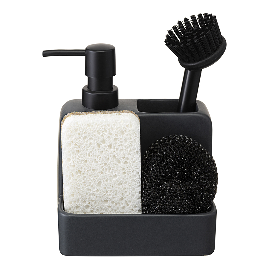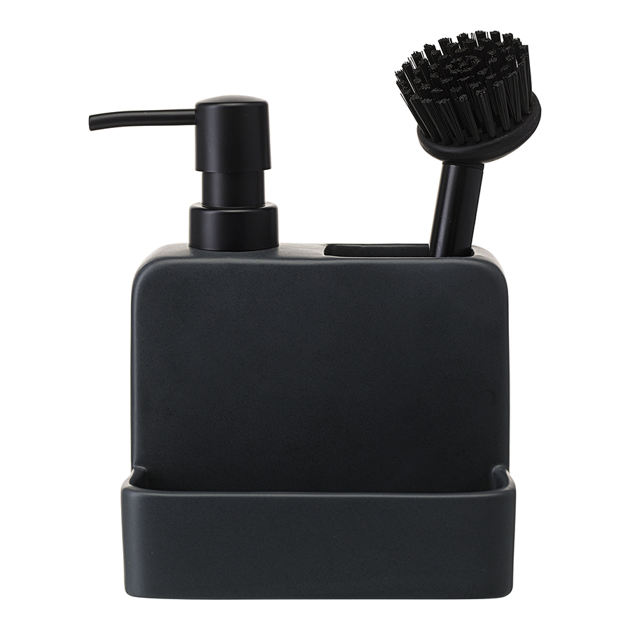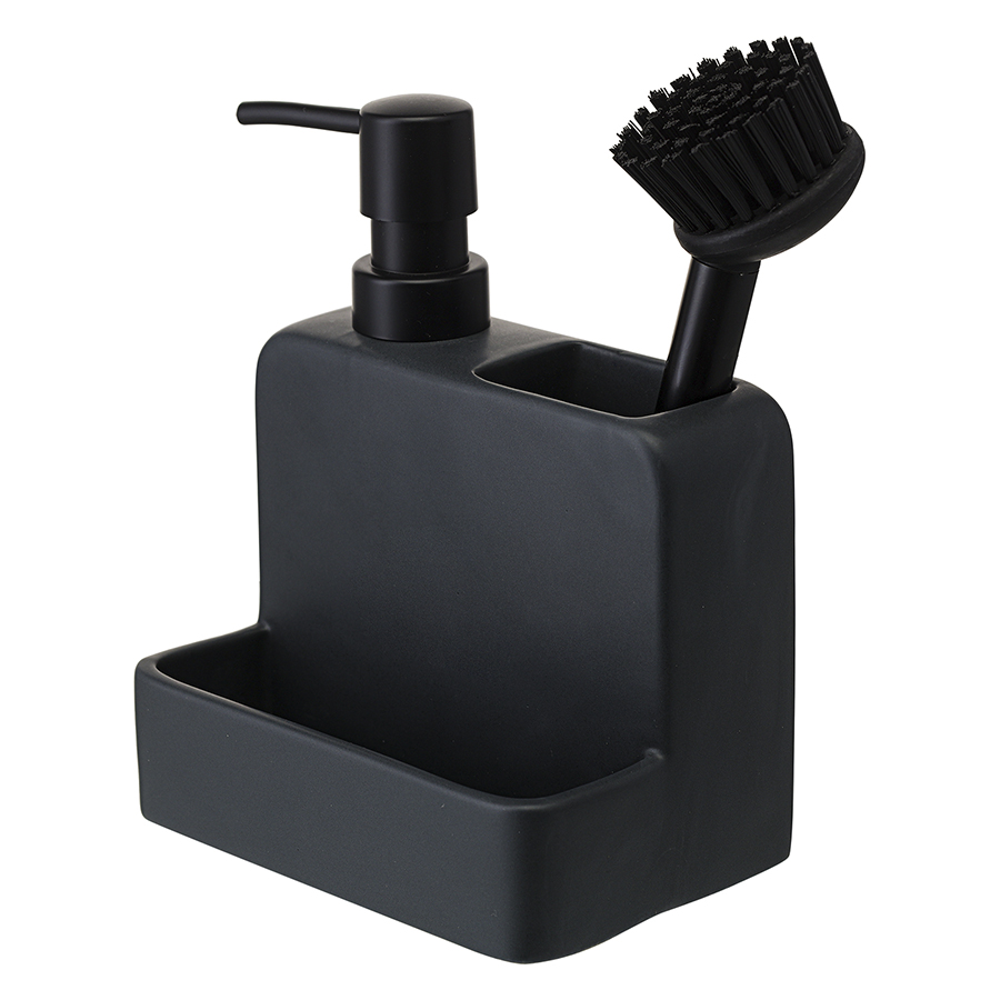 Материалы: диспенсер – керамика, ABS-пластик, полипропилен, щетка – нержавеющая сталь 201, полипропилен. Размеры: 14х9,5х17,5 см. Объем: 280 мл. Цвет: графит.