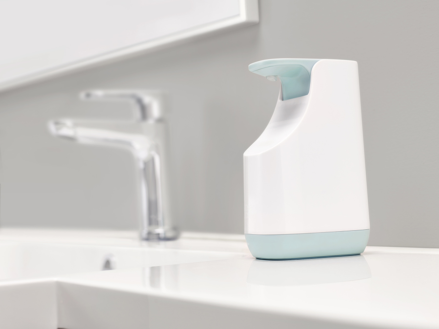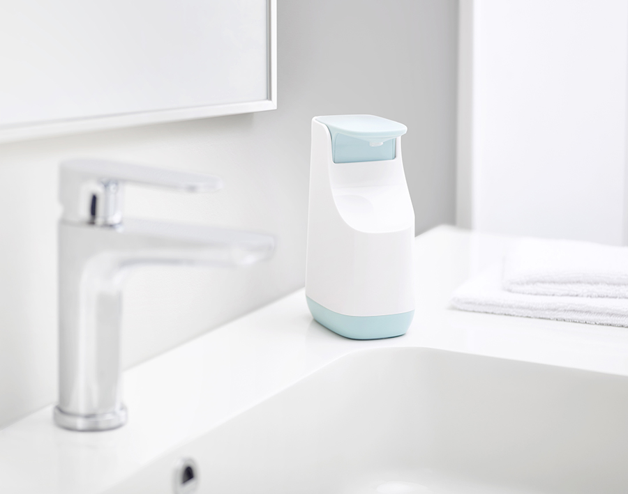 Широкая помпа легко нажимается, дозатор рассчитан на оптимальное количество мыла на каждый раз. На корпусе диспенсера предусмотрен выступ для капель и шкала для своевременного пополнения мыла. Диспенсер оснащен специальными силиконовыми ножками, которые придают ему дополнительную устойчивость на гладких поверхностях. Он легко разбирается и моется. Общий объем: 350 мл. Диспенсер отлично подойдет для ванной в современном стиле, его можно комбинировать с другими аксессуарами из коллекции Joseph Joseph.