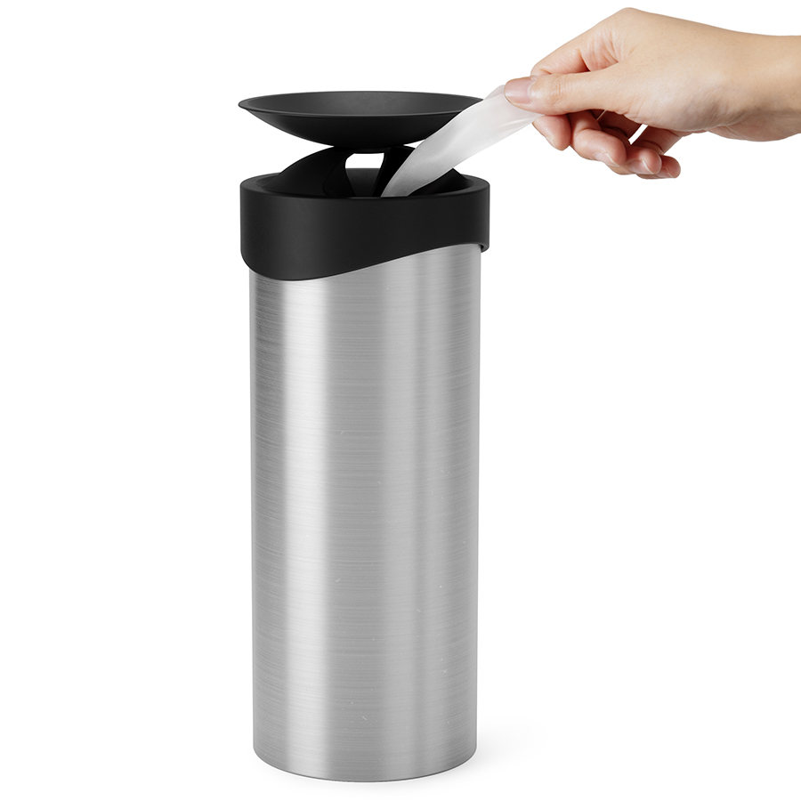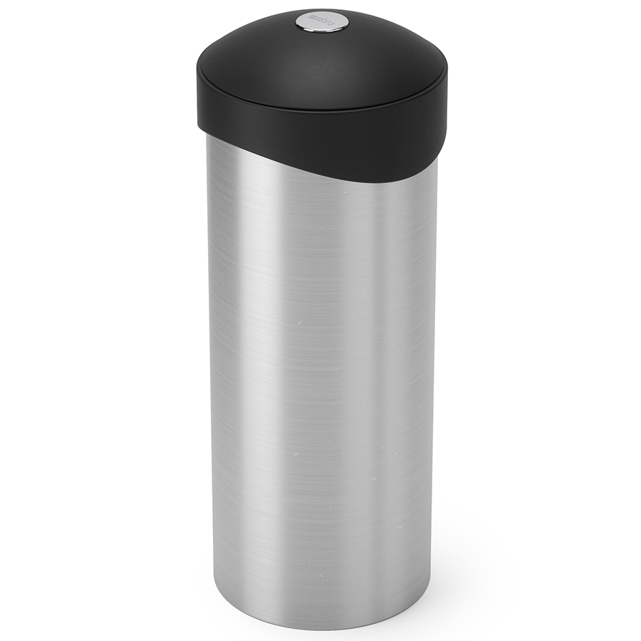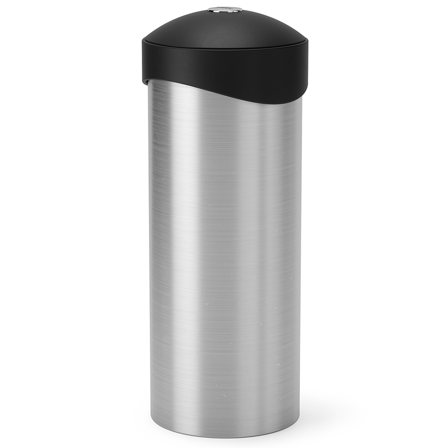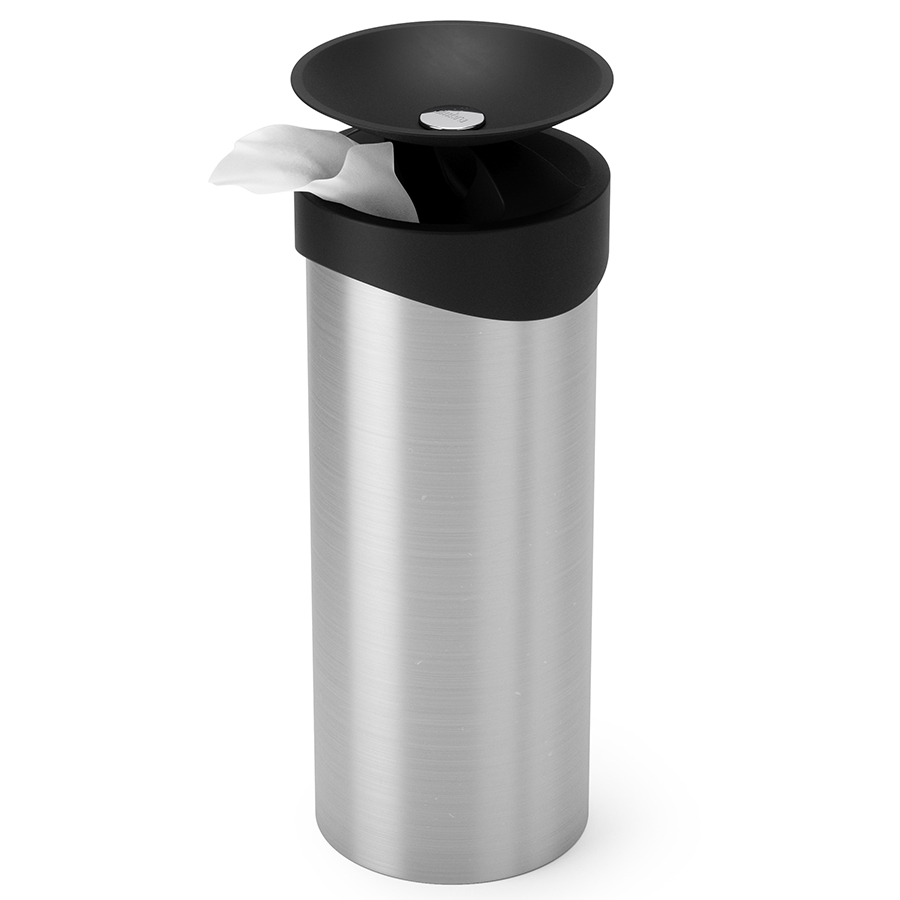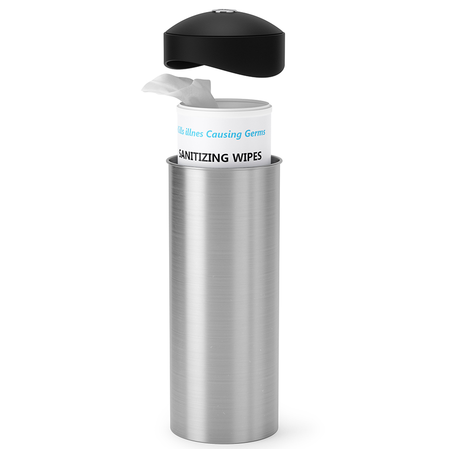 Прочный корпус выполнен из нержавеющей стали. Нажмите центральную кнопку, чтобы открыть гибкую верхнюю крышку. Подходит для 35 стандартных дезинфицирующих салфеток и имеет съемную крышку для легкого повторного наполнения.