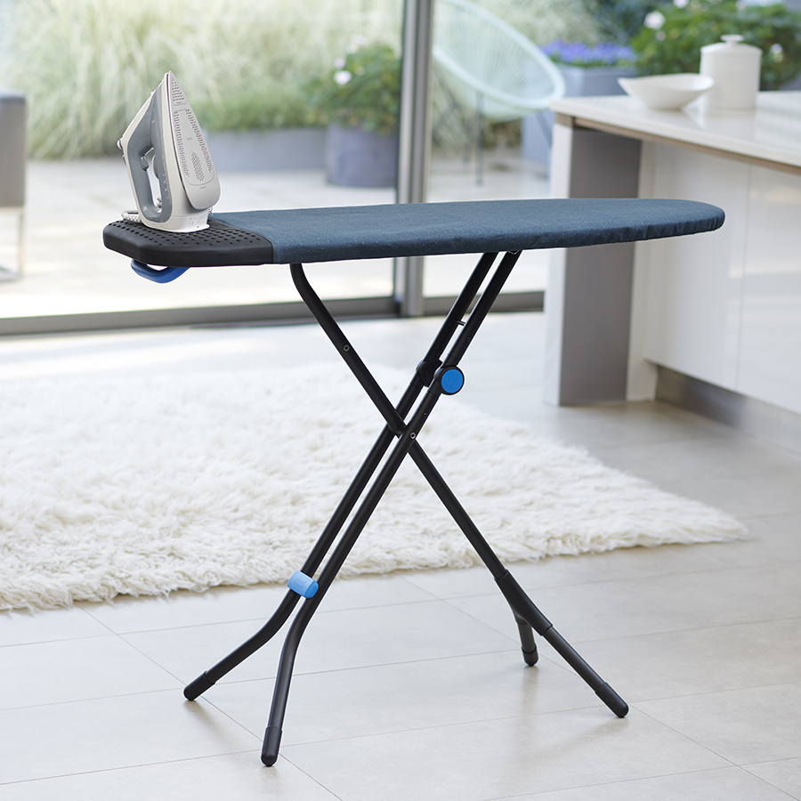Достоинство инновационного чехла – многослойное покрытие с технологией DripShield ™, созданное для работы с большими объемами глажки и для использования утюгов с парогенераторами. Чехол служит долго, но при необходимости заменяется. Конструкция регулируется по высоте: от 84 см до 99 см. Чехол оборудован термостойкой силиконовой подставкой для утюга. Он снимается и удобно складывается для компактного хранения. Есть крючок для подвешивания доски.