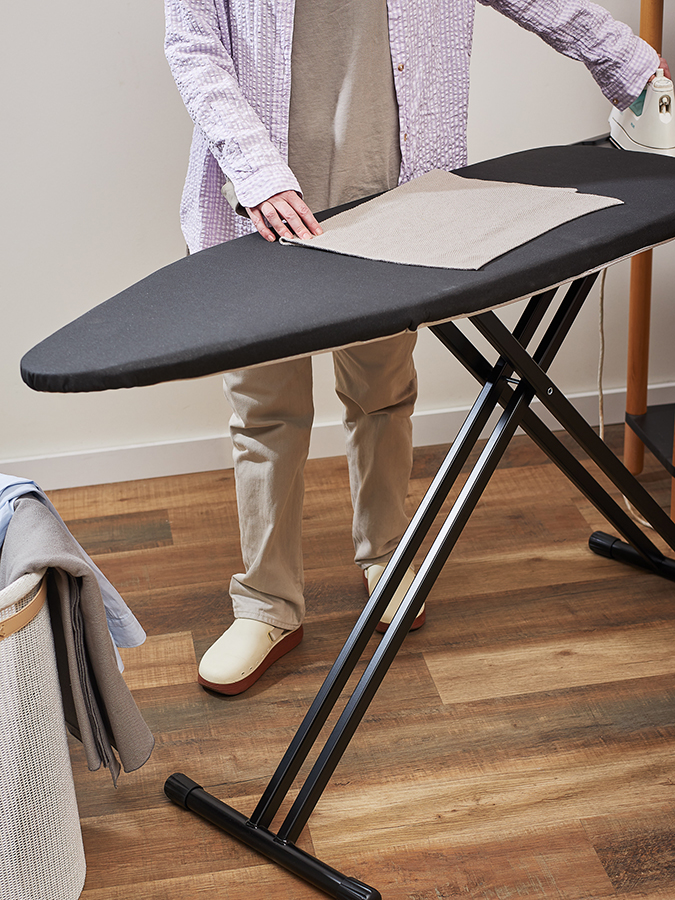 - Семь уровней регулировки высоты позволяют выбрать наиболее комфортное положение для глажки.