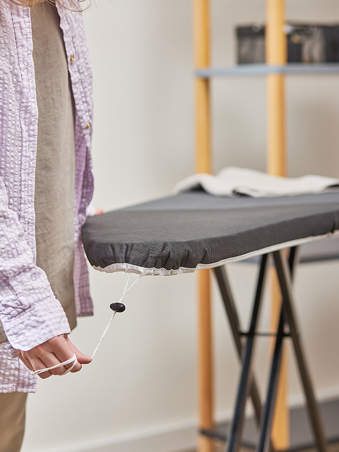 Материалы: сталь, хлопок, пенополиуретан, фетр, пластик. Размеры в разложенном состоянии: 150х45х69/92 см. Размеры в сложенном состоянии: 150х45х7 см. Минимальная высота доски: 69 см. Максимальная высота доски: 92 см. Размеры гладильной поверхности: 122х43 см. Размеры подставки для утюга: 27х45 см. Размеры ножек: 30х20 мм. Цвет чехла: графит.