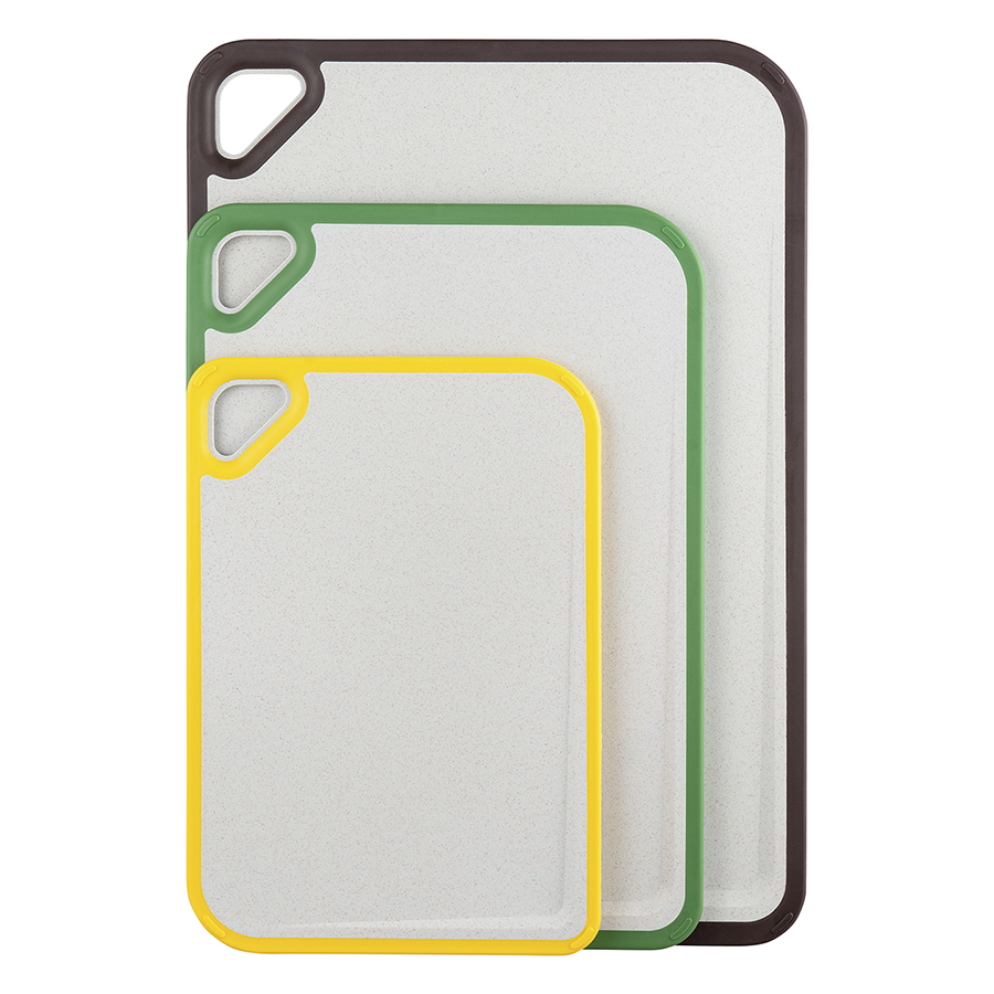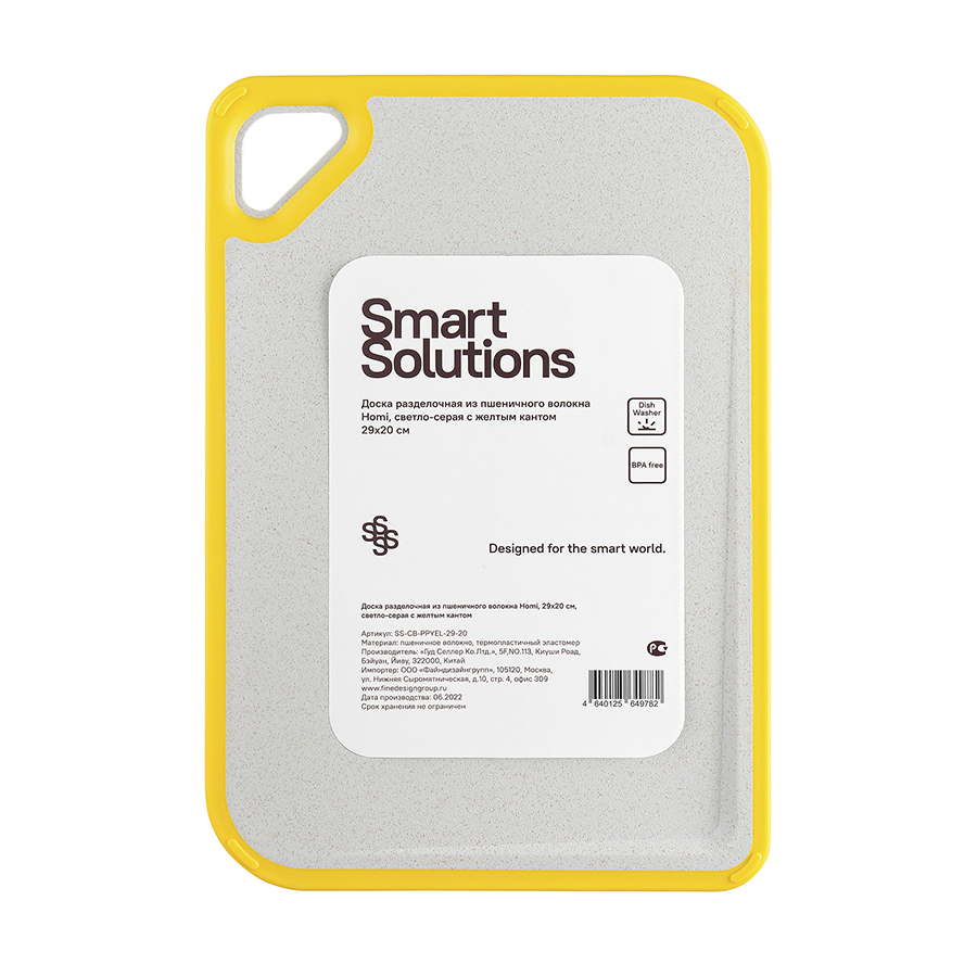 Доска разделочная из пшеничного волокна Homi, 29х20 см, светло-серая с желтым кантом, Smart Solutions