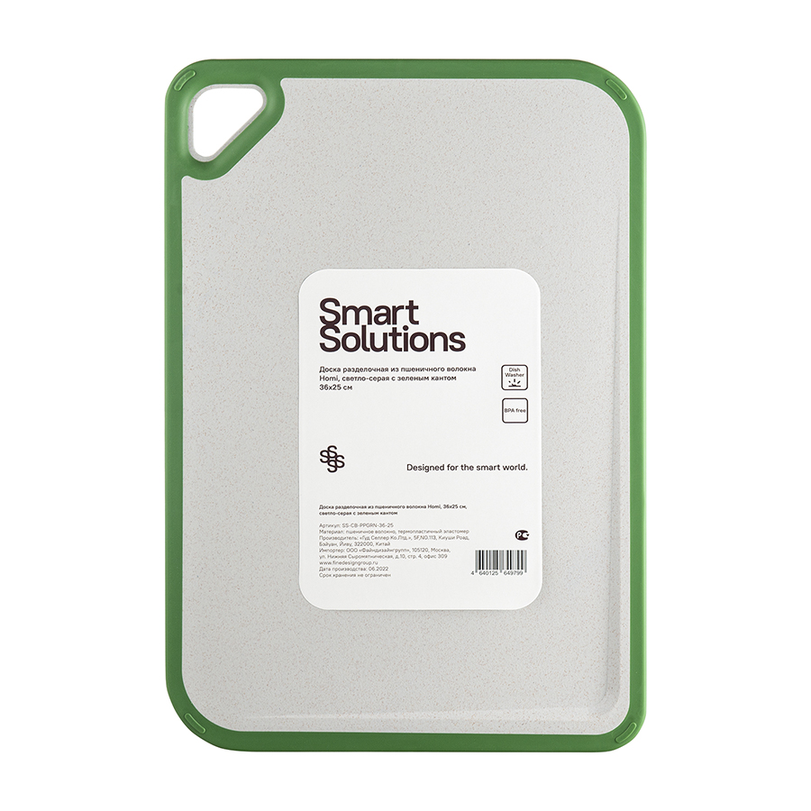 Доска разделочная из пшеничного волокна Homi, 36х25 см, светло-серая с зеленым кантом, Smart Solutions