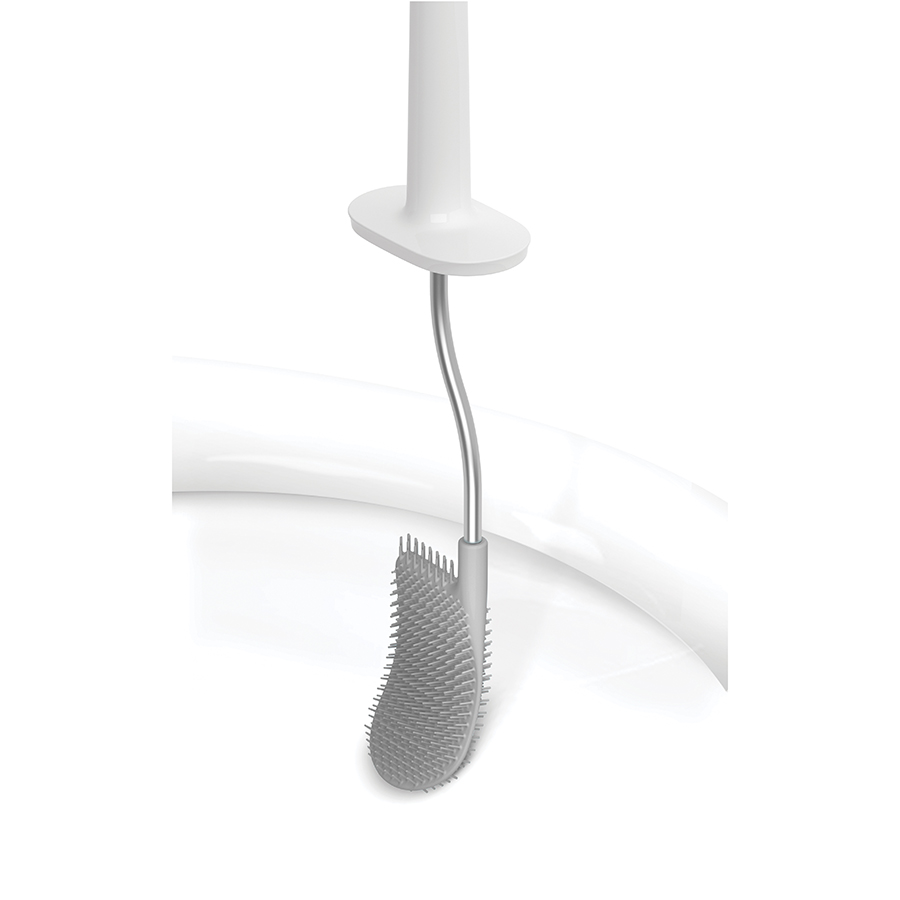 Гибкая полимерная щетка эффективно очищает все труднодоступные места и не впитывает воду. Высокотехнологичный материал ёршика не притягивает грязь и легко моется. Двухуровневая щетина с большим расстоянием между щетинками не дает грязи скапливаться. После уборки ёршик не надо стряхивать, пытаясь очистить и высушить: благодаря уникальному дизайну Flex™, вода быстро стекает со щетки и не оставляет лишних капель. Удобная и компактная подставка дополняет этот эргономичный аксессуар и не занимает много места.