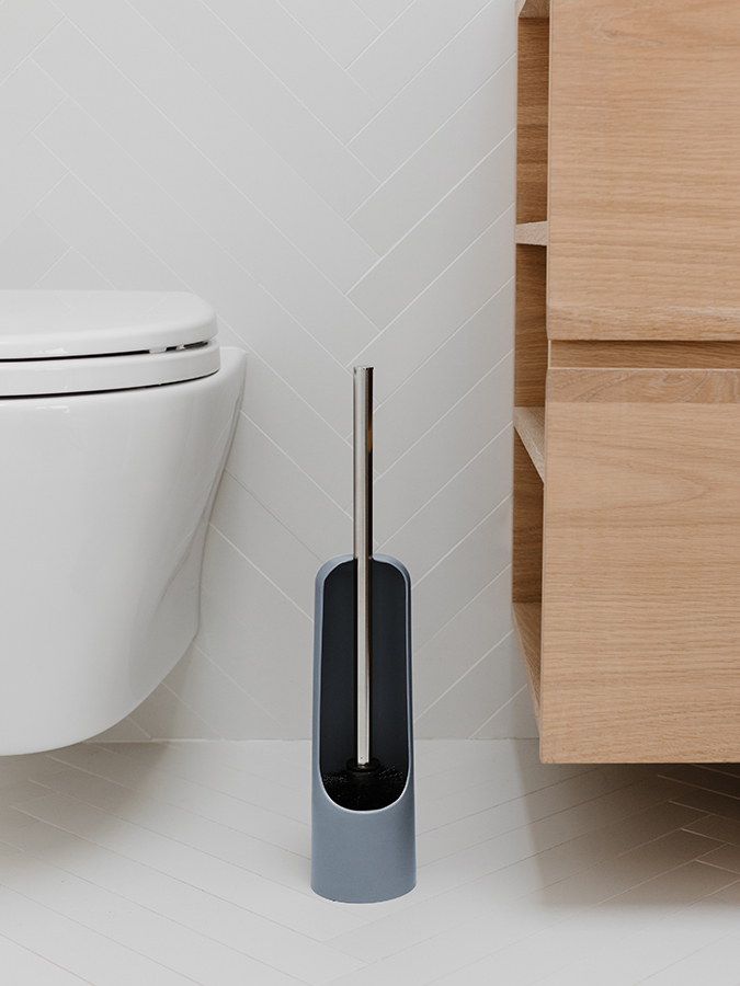 Держатель изготовлен из приятного на ощупь материала, который легко чистится и отличается высокой прочностью. В комплекте с держателем идет гладкая щетка с хромированной ручкой. Touch имеет утяжеленное основание, что означает, что оно не опрокинется и остается устойчивым, когда вы убираете и кладете щетку обратно.