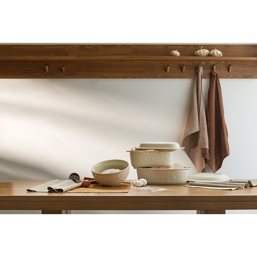 - Изготовленная из каменной керамики форма равномерно прогревается и создает условия для идеального пропекания теста.