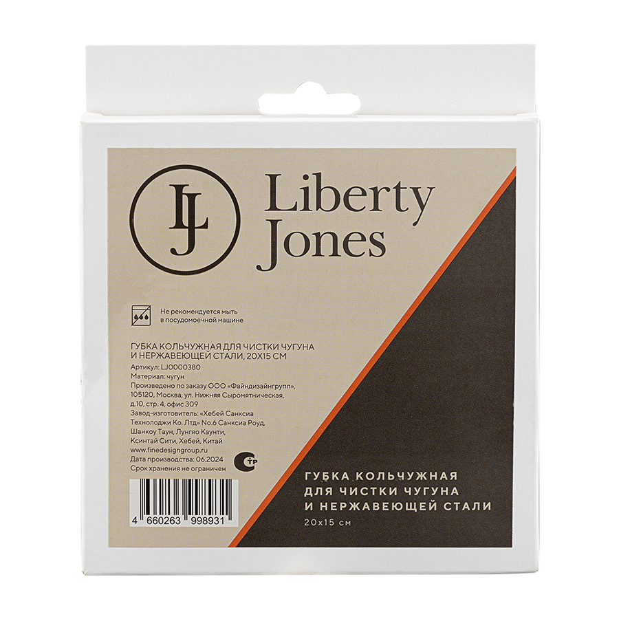 Губка кольчужная для чистки чугуна и нержавеющей стали, 20х15 см, Liberty Jones