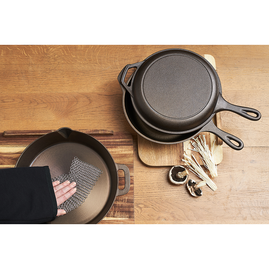 "Губка кольчужная поможет легко и быстро очистить чугунную и стальную посуду от пригоревшей еды и стойких загрязнений.