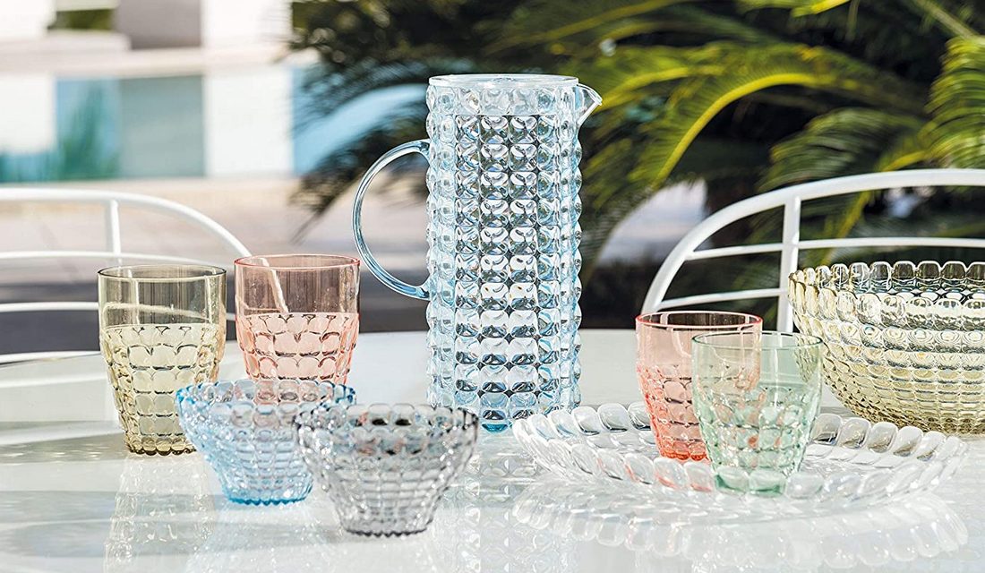 В 1990-х годах разработка новых полимерных материалов дала толчок к созданию ещё более интересных разработок. Guzzini смело сочетает футуристический акрил с традиционными стеклом, фарфором, сталью, даже деревом, на выходе получая великолепные образцы посуды.