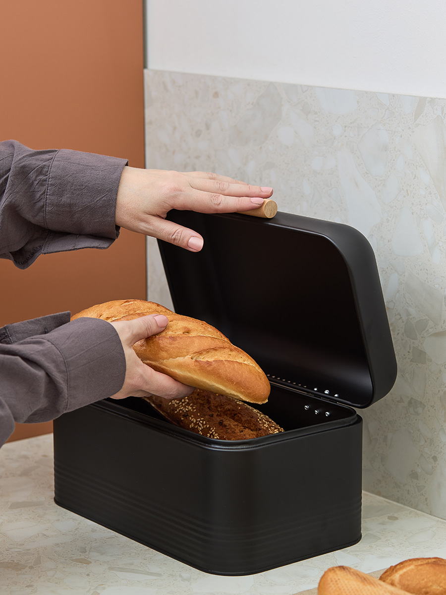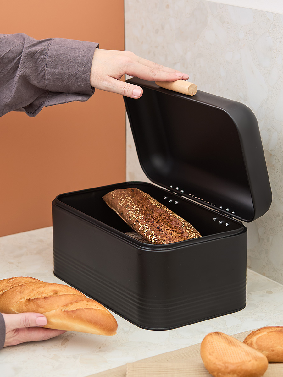 - Хлебница выполнена из углеродистой стали с износостойким порошковым покрытием, что гарантирует ей устойчивость к коррозии, повреждениям и износу.