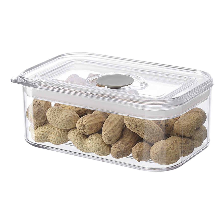 - Контейнер выполнен из SAN-пластика, который обладает высокой прочностью, не впитывает запахи и не вступает в химическую реакцию с продуктами.