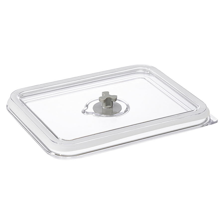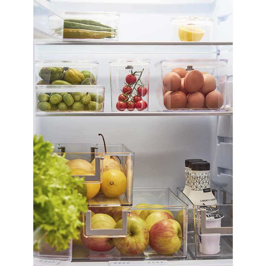 - Контейнер выполнен из SAN-пластика, который обладает высокой прочностью, не впитывает запахи и не вступает в химическую реакцию с продуктами.