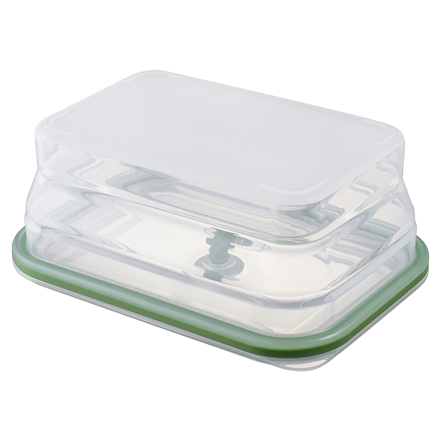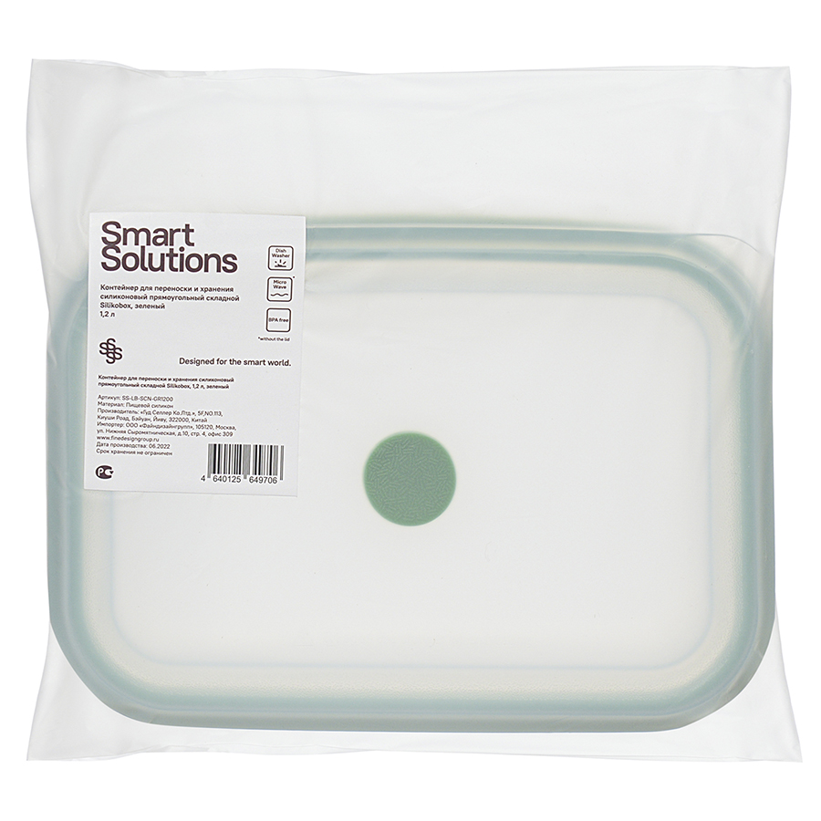 Материал: пищевой силикон. Размеры: 20,5х14,5х8,5 см. Размеры в сложенном виде: 20,5х14,5х3,6 см. Объем: 1,2 л. Цвет: зеленый.