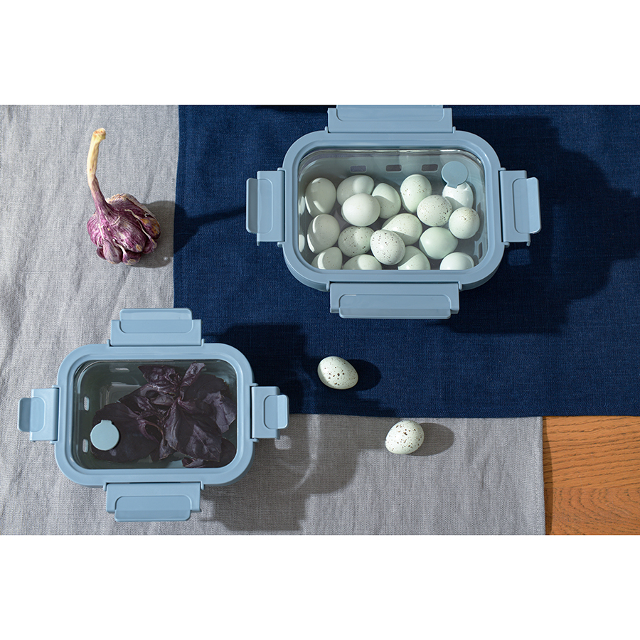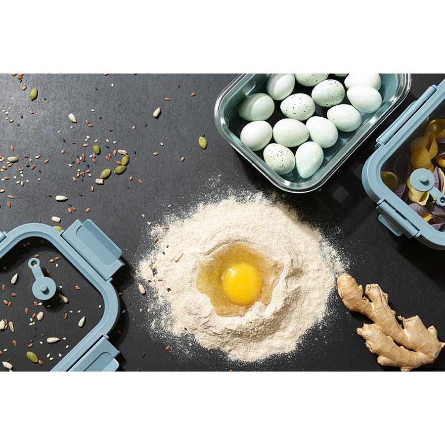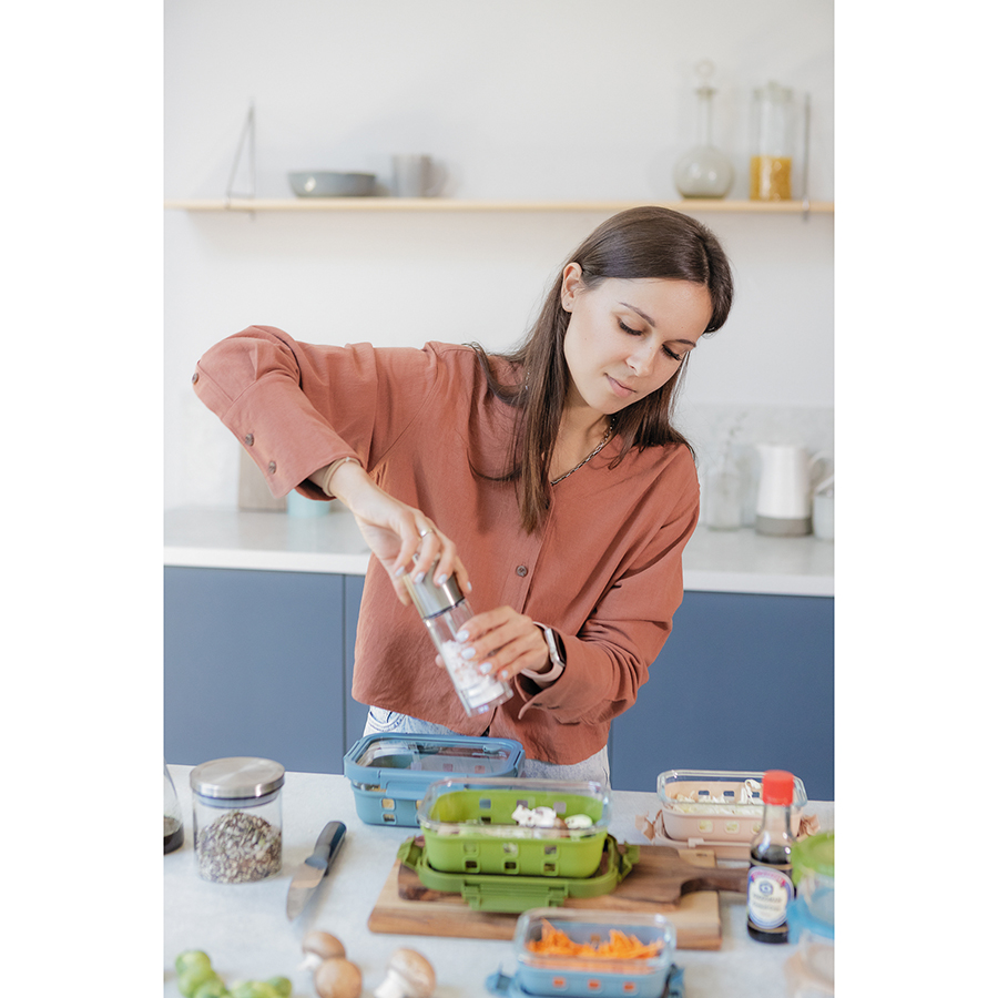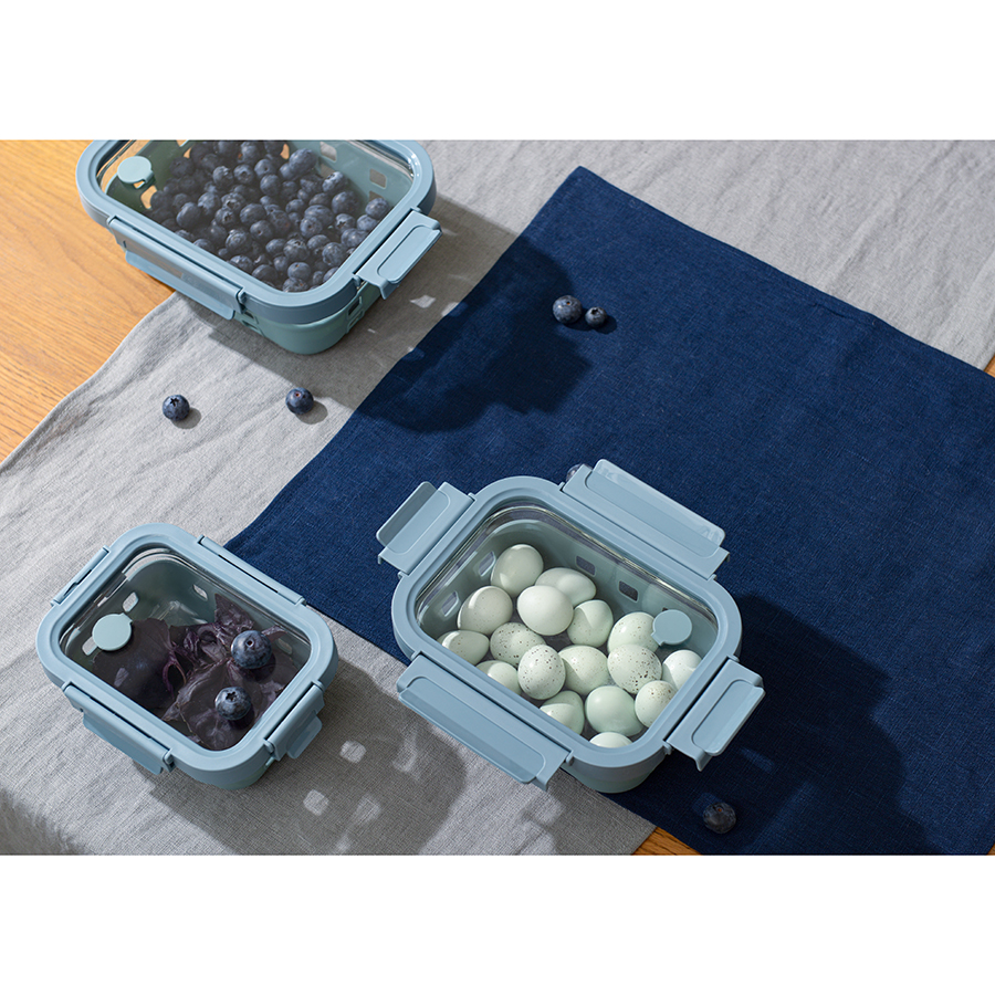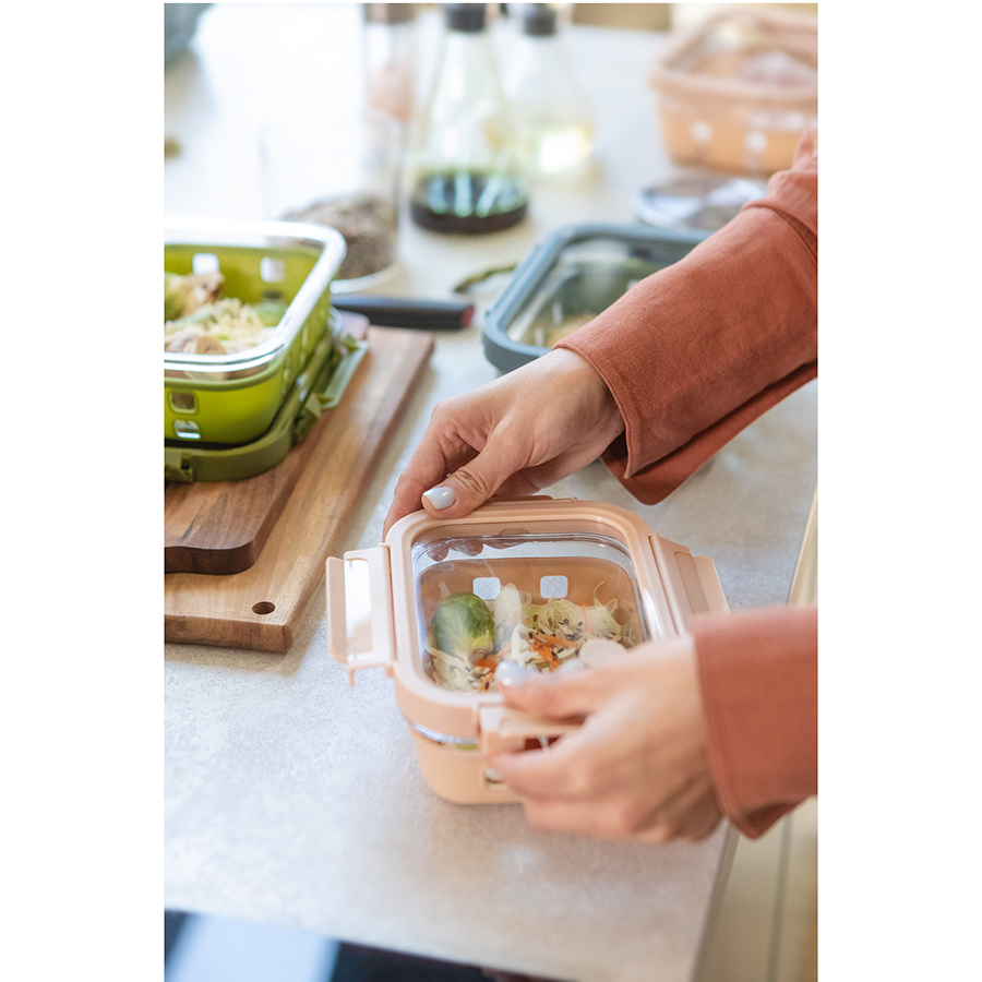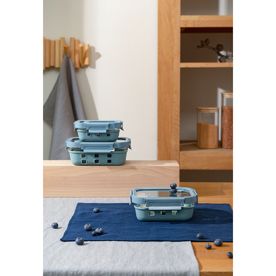 Контейнер стеклянный в чехле из силикона отлично подходит для хранения, запекания и транспортировки продуктов, в том числе готовых блюд. Емкость из боросиликатного стекла не впитывает запахи и загрязнения, легко моется. Крышка с надежными пластиковыми замками на каждой стороне обеспечивает плотное закрывание. Материалы не содержат бисфенол-А и являются абсолютно безопасными для здоровья. Наличие специального вентиляционного отверстия позволяет выпустить лишний воздух или горячий пар, что повышает герметичность и улучшает условия хранения продуктов. Силиконовый чехол без труда снимается для более тщательной очистки контейнера.