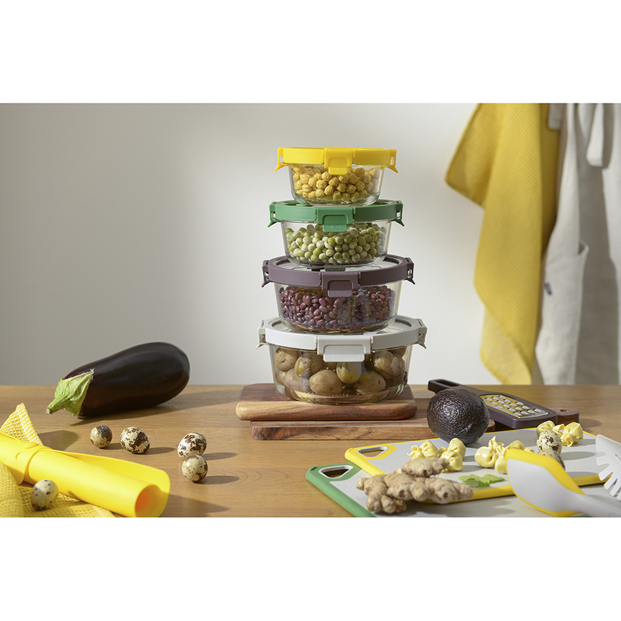Контейнер круглый от бренда Smart Solution – готовое решение для хранения продуктов и приготовления различных блюд в духовке. Емкость из прочного боросиликатного стекла не боится перепадов температуры, обладает устойчивостью к износу и химическим воздействиям, легко моется. Материал не содержит токсинов и бисфенола-А, не имеет запаха, не меняет вкус еды. Крышка защищает содержимое от заветривания и попадания внутрь посторонних предметов. Наличие специального вентиляционного отверстия позволяет выпустить из контейнера лишний воздух или горячий пар, что повышает герметичность и улучшает условия хранения продуктов.