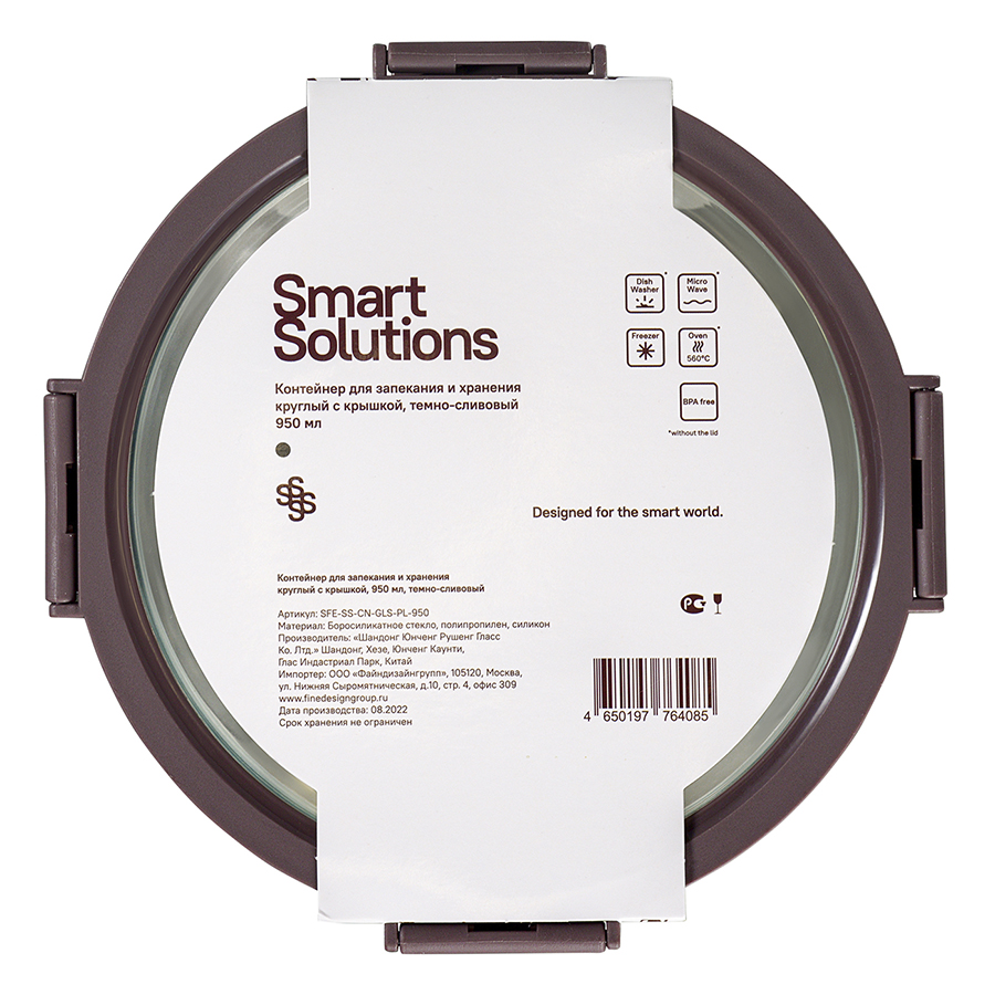 Контейнер для запекания и хранения круглый с крышкой, 950 мл, темно-сливовый, Smart Solutions